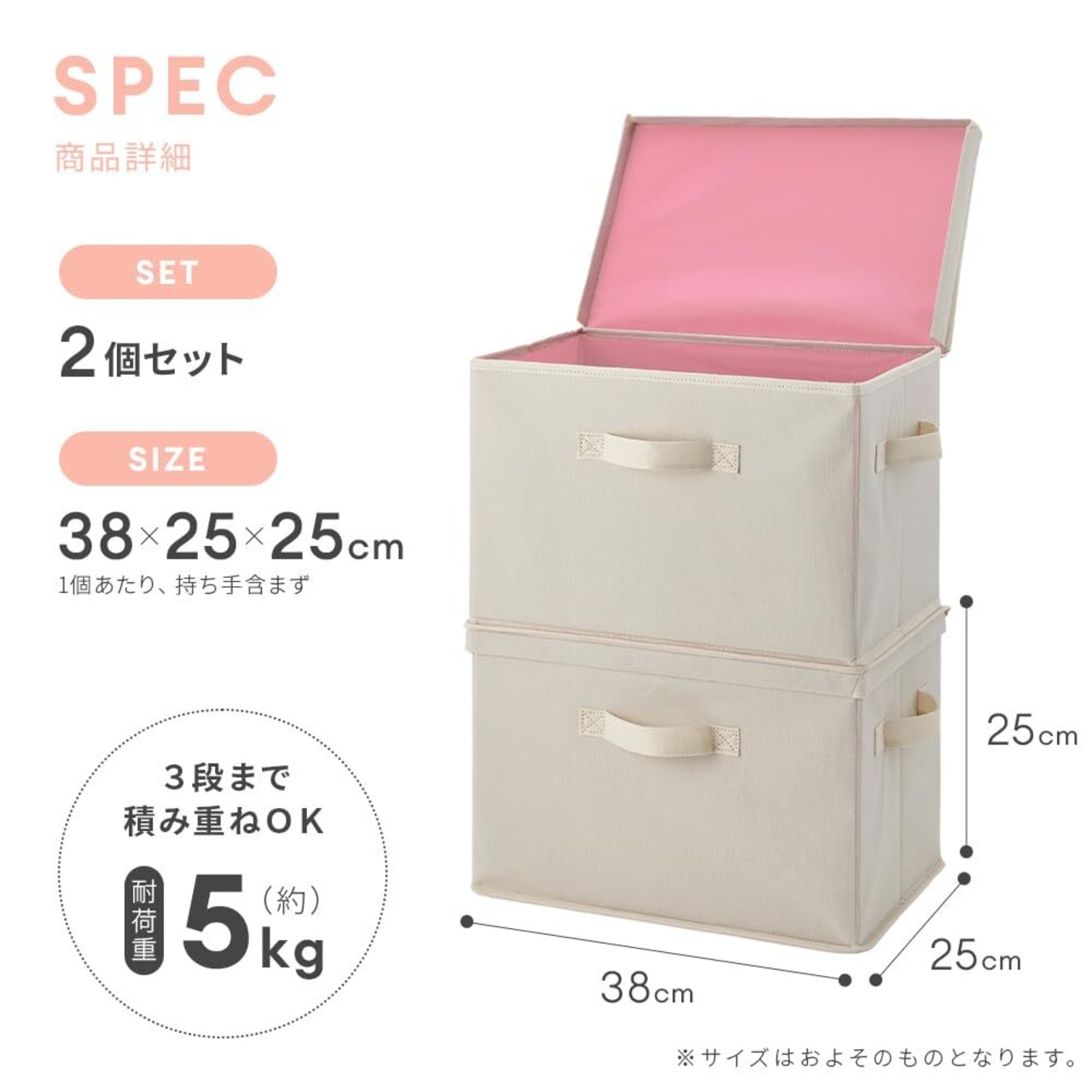 アイメディア(Aimedia) 収納ボックス 2個セット ベージュピンク 折りたたみ フタ付き 不織布 大容量 24L 整理ボックス 収納ケース 衣装ケース 衣類収納 積み重ね フタ付整理箱 おしゃれ