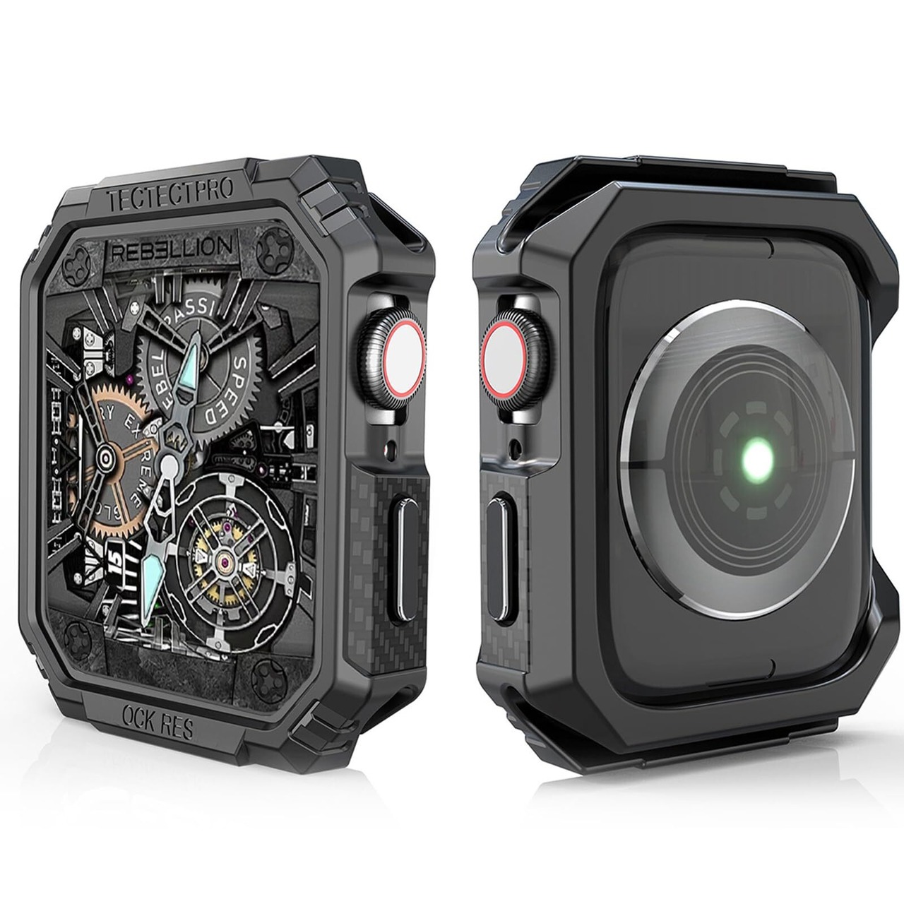 YAODLE Apple Watch ケース 44mm アップルウォッチ TPU 保護ケース Series SE 2/SE/6/5/4 対応 カーボンろう付けパターン 落下 衝撃 吸収 タフネスデザイン すり傷 防止 耐衝撃 保護カバー 米軍 MIL規格(44mm,ブラック)