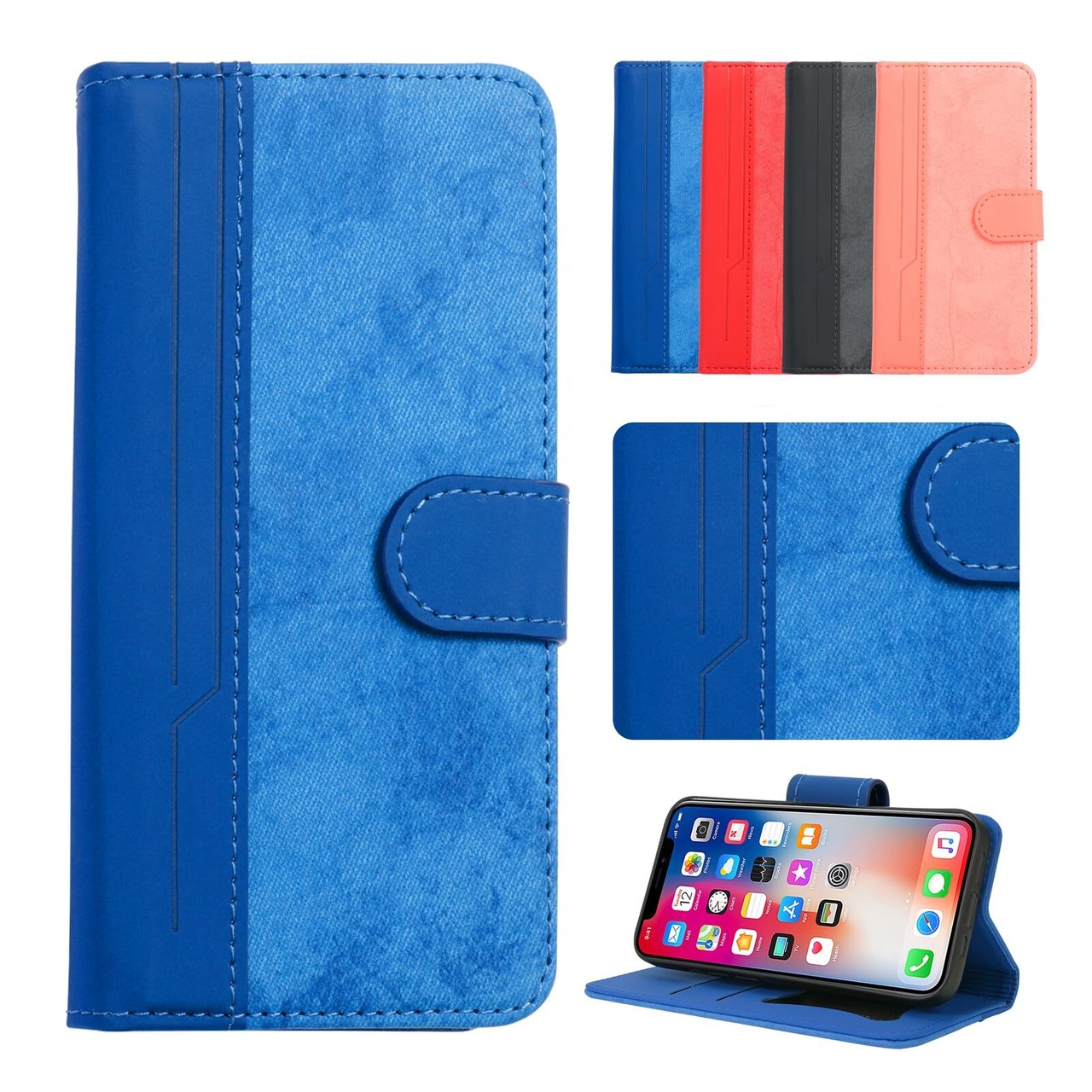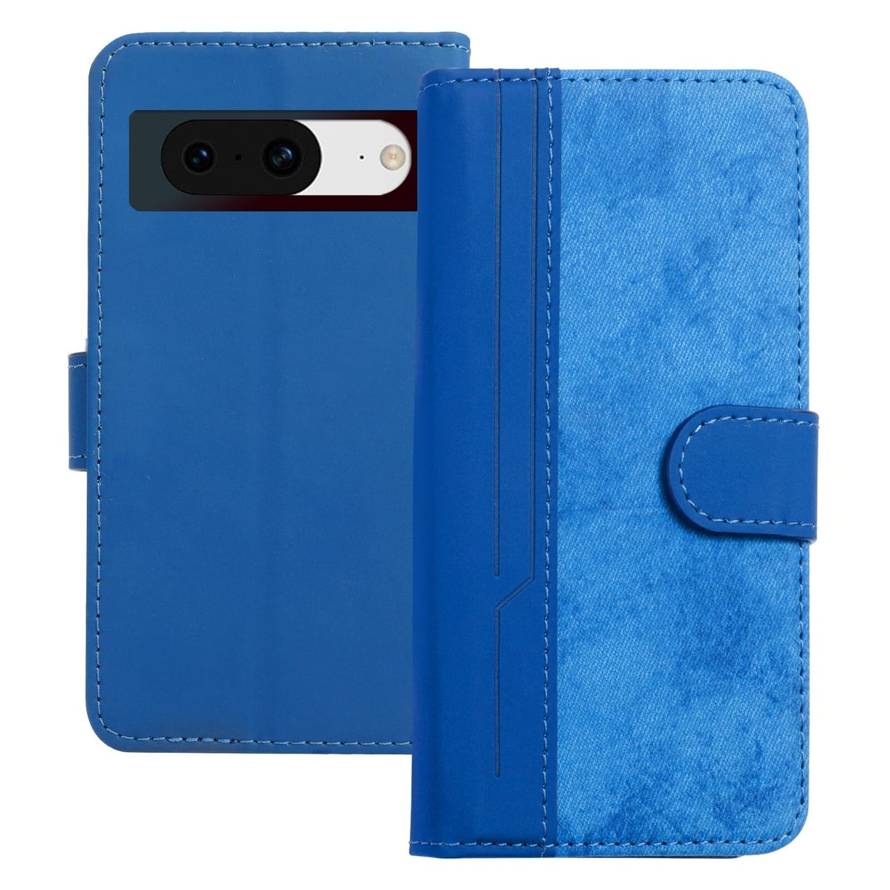 TEDTIKJT Google Pixel 8a ケース 手帳型 グーグル ピクセル 8a ケース 携帯カバー 全面保護 高級PUレザーとデニムの組み合わせデザイン google pixel 8a 手帳型ケース カード収納ポケット 横置きスタンド機能 pixel8a 6.1インチ対応 カバー 財布型 シンプルなビジネススタイル ピクセル8a スマホケース -青