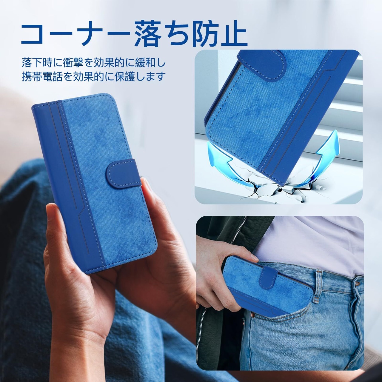 【高品質素材及び設計】:ピクセル 8a ケース 手帳型の高級PUレザーとデニムの組み合わせデザインの表面+優しい裏面(柔軟なTPUカバー)と組み合わせ、衝撃吸収機能が良いのです、しっかりの二重保護でスマホ本体を守り抜きます。