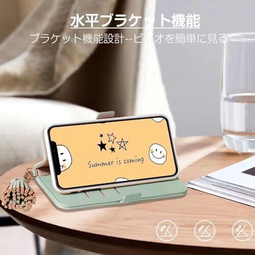 Acclink iPhone15Pro ケース 手帳型 可愛い スマホケース アイフォン15Pro ケース iPhone 15Pro 手帳型 ケース カード収納 iPhone 15Pro 携帯カバー 手帳型 カード収納 柔軟 女性 笑顔 タッセル プレミアムレザース 全面保護スタンド機 アイフォン15Pro ケース 財布型(iPhone 15Pro,グラッシーグリーン)