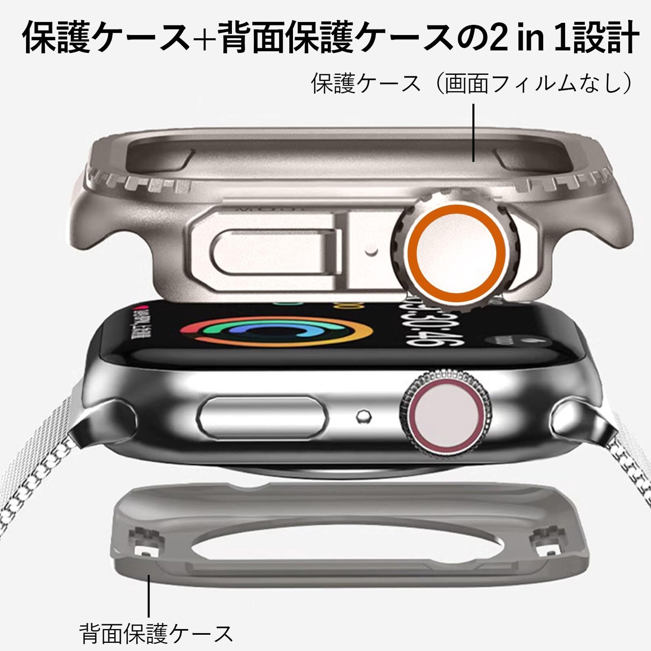 YOFITAR for Apple Watchケース アップルウォッチカバー 亜鉛合金素材 45mm/44mm 瞬時にApple Watch Ultraに変身する series 9/8/7/SE/6/5/4 アップルウォッチ保護ケース+背面ケースの2 in 1デザイン 防傷 耐衝撃 Apple Watchアクセサリー (45mm、チタンカラー)