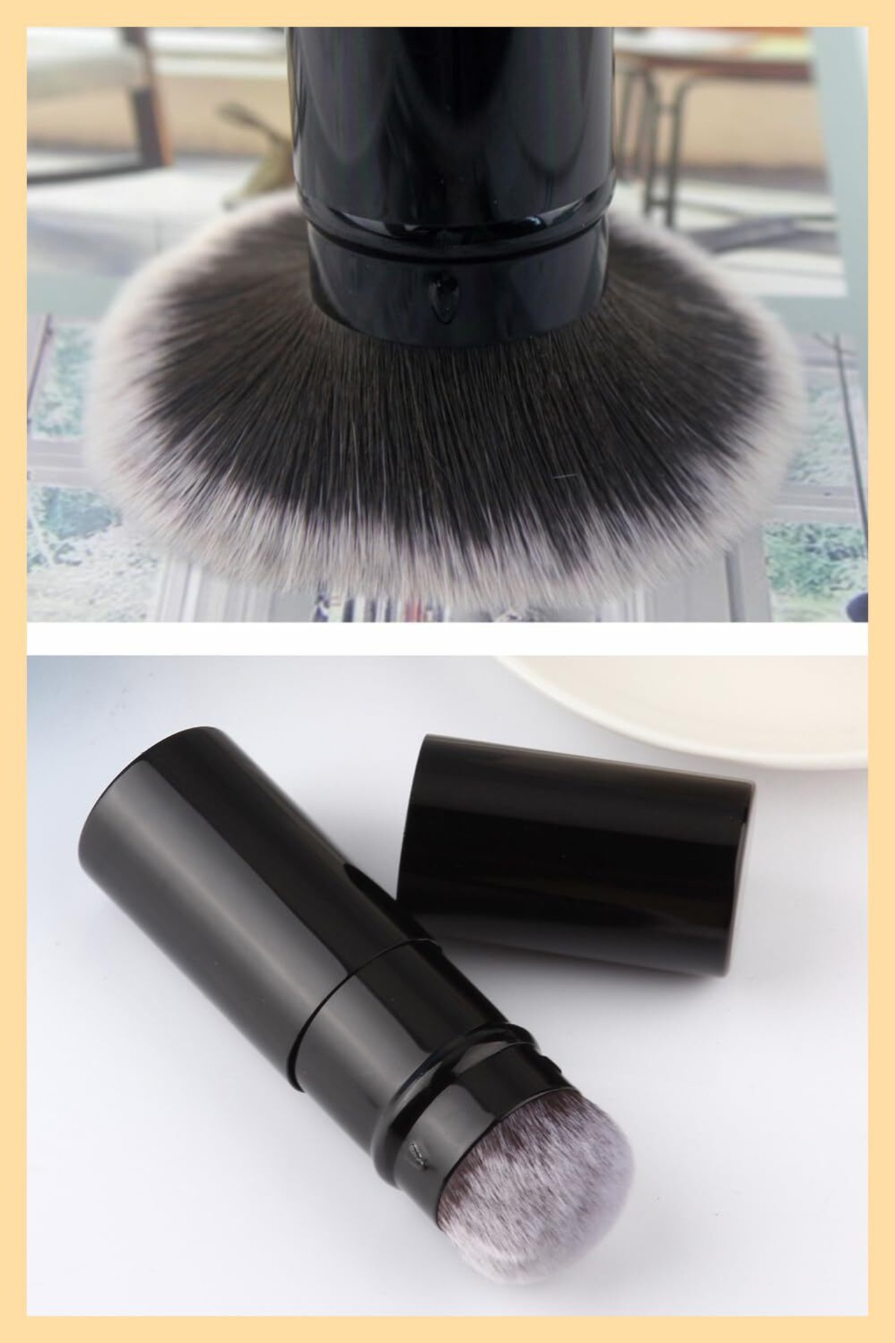 【使用便利】スライド式収納タイプのメイクブラシ、毛先を収納できるタイプです、携帯に便利なメイクブラシです。