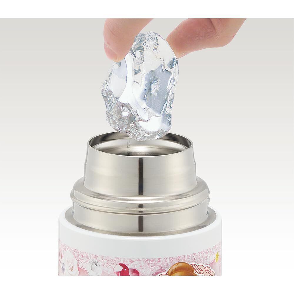 氷が入れやすいワイド口径、真空二重構造で保冷力UP/誤作動によるキャップの開閉を防ぐロック機能付