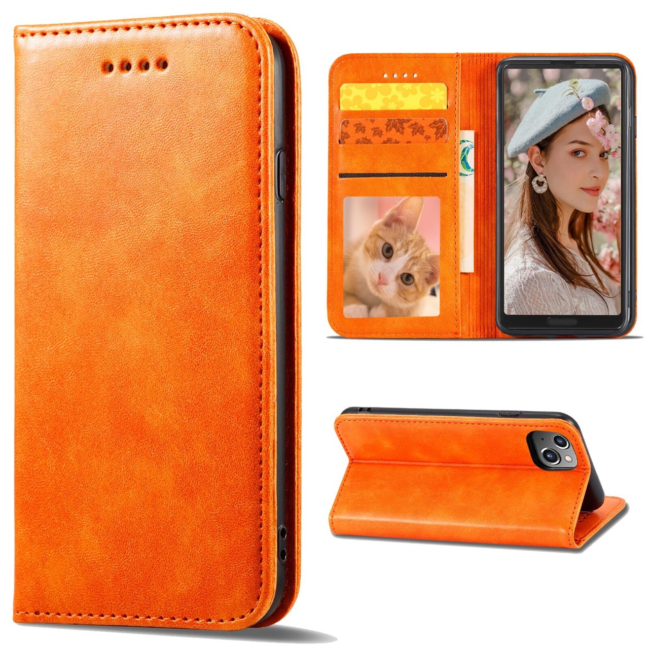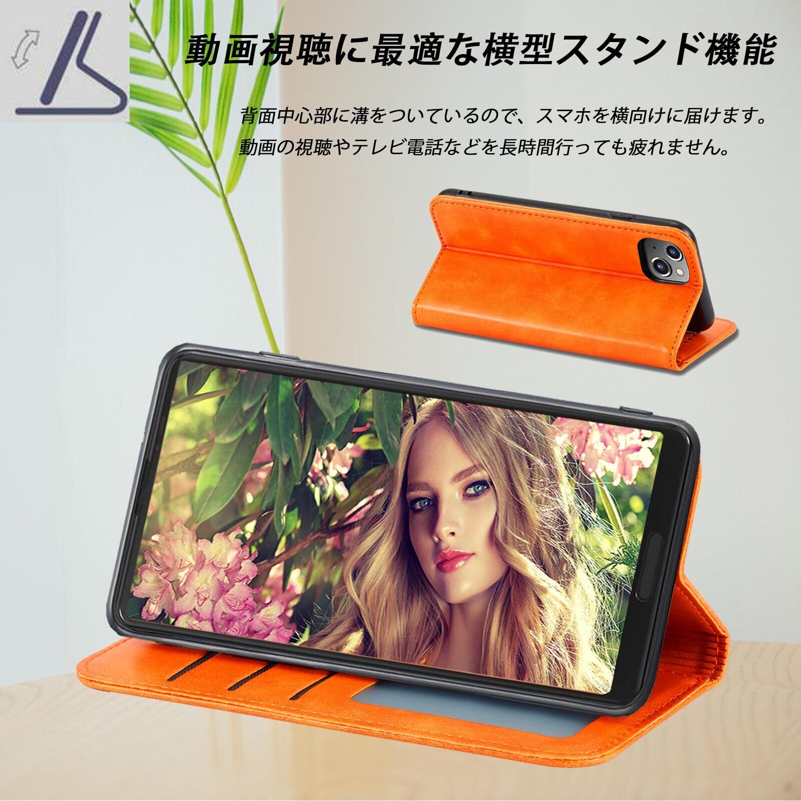 iPhone15 ケース 手帳型 iPhone 15 手帳 カバー iPhone15 手帳型ケース アイフォン15 ケース 携帯ケース iPhone15 case あいふぉん15手帳型ケース スマホケース 携帯カバー PUレザー ストラップホール付き カード収納 内蔵マグネット式 スタンド機能 薄型 防水 ノート型 耐衝撃 (iPhone 15 6.1 inch対応) オレンジ