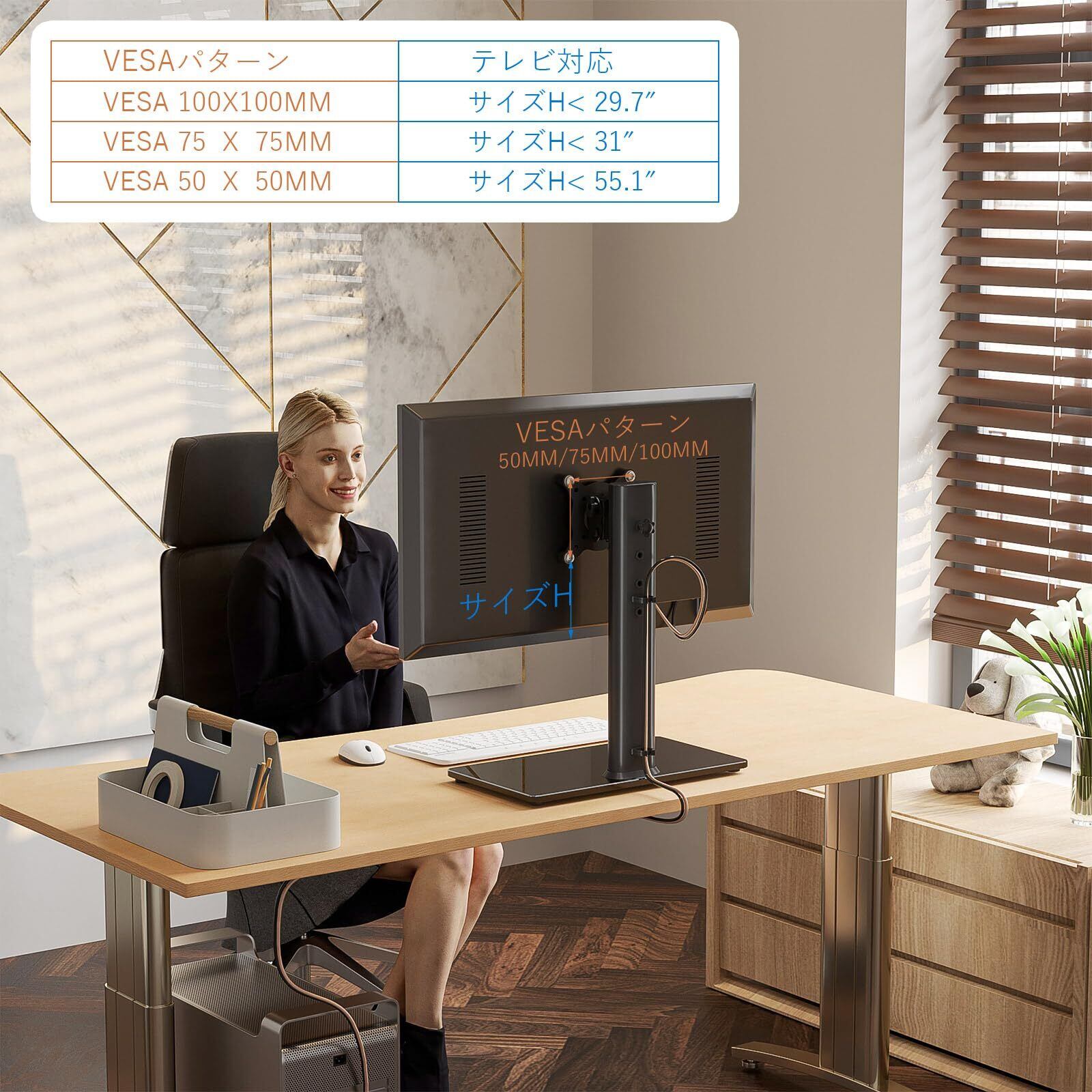 互換性シングルコンピューターモニターマウント、13、15、17、19、21、23、27、30、32インチLCD LEDプラズマフラットスクリーンテレビ用50×50mm、75×75mm、または100×100mmの背面取り付け穴付きライザー取り付けスクリーン、ケーブル付き コードを清潔に整理するための管理