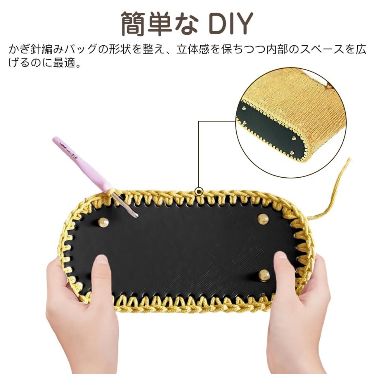 【用途】かぎ針編みバッグの形状を整え、立体感を保ちつつ内部のスペースを広げるのに最適。