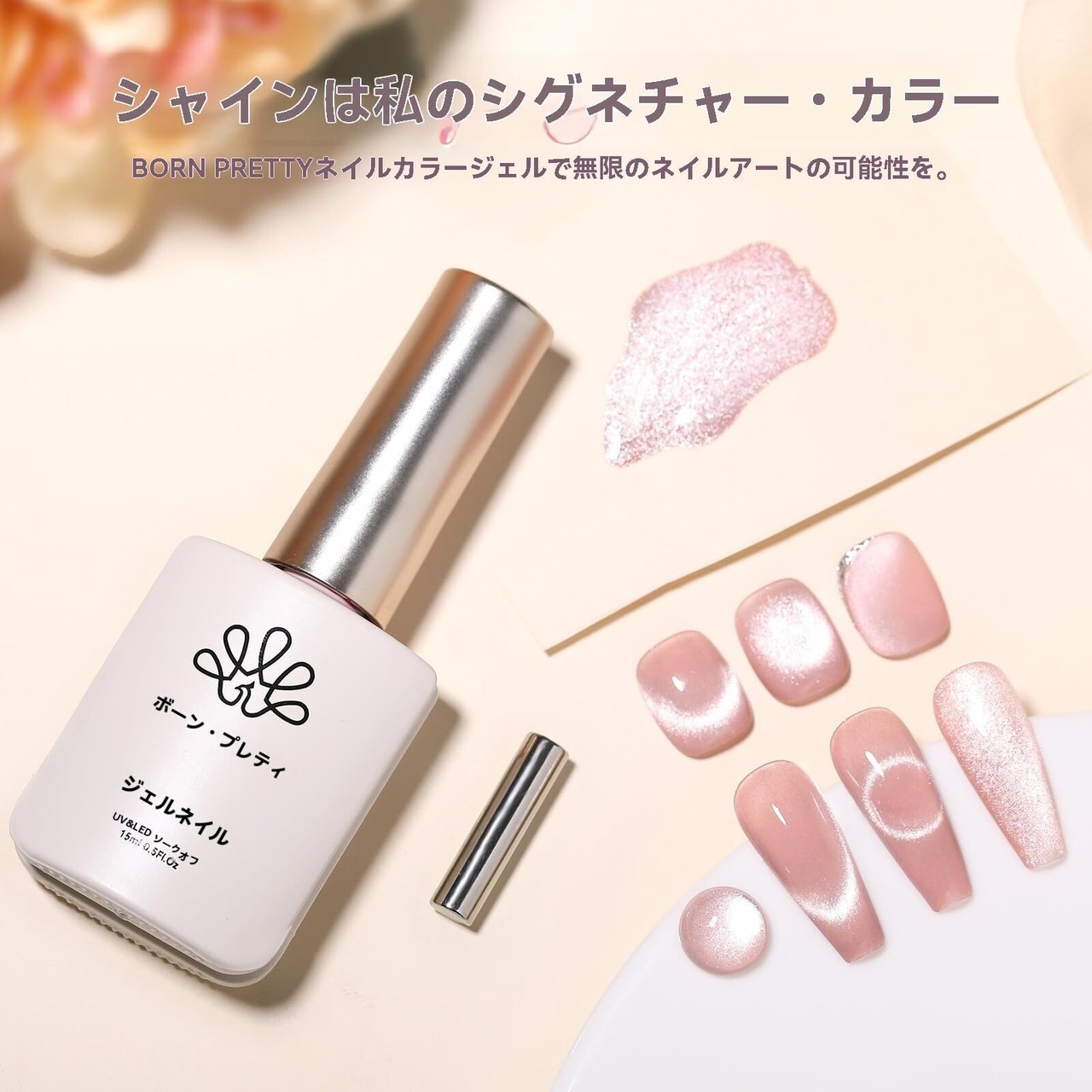 BORN PRETTY マグネットネイル 15ML ジェル キャッツアイジェル ギャラクシー ジェルネイル マグネット 磁石 ジェル 猫目 微粒子ラメ ダイヤモンドジェル 磁石付き 眩しい 輝き ピンク