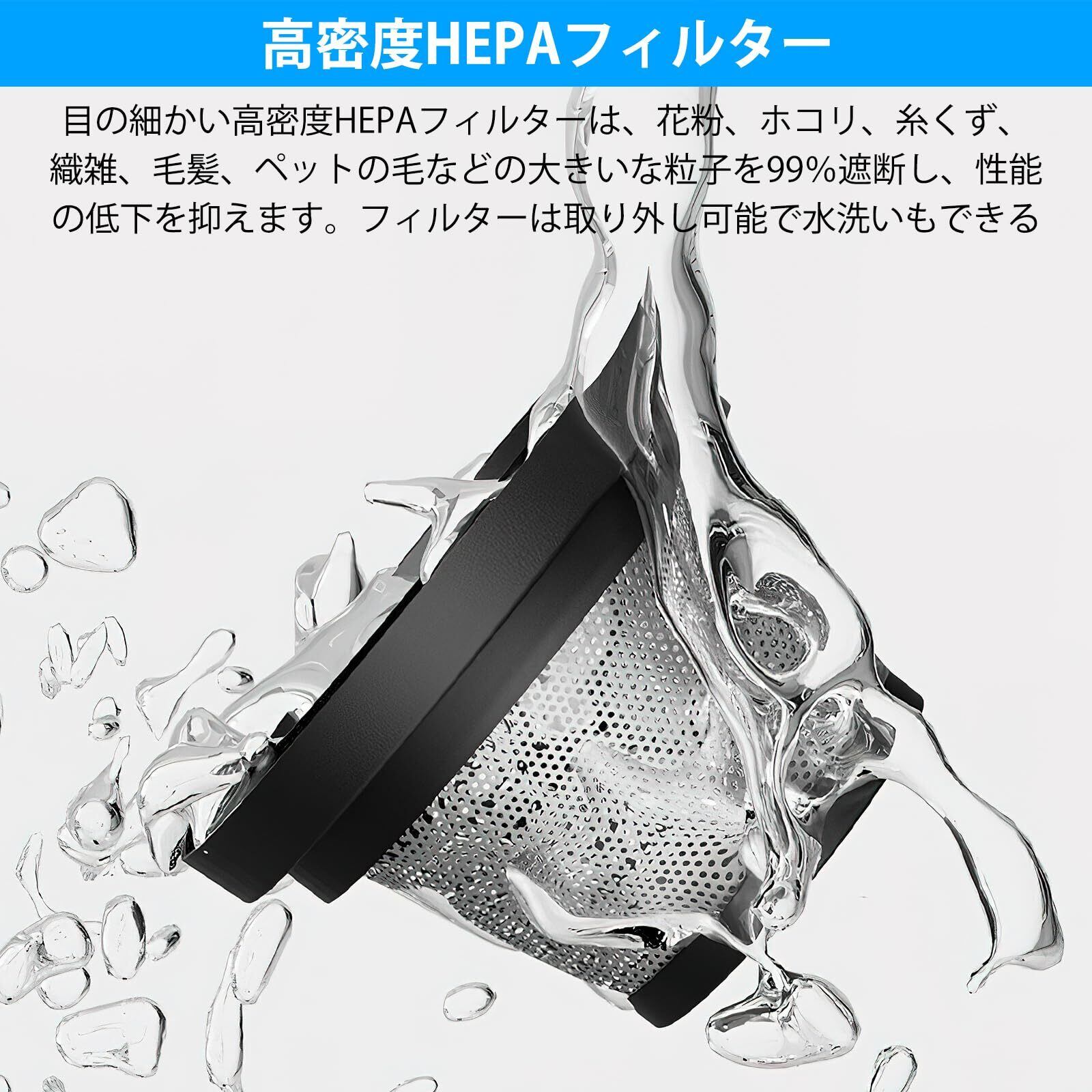 【2つモード&操作とお手入れが簡単】このハンディクリーナーは2つモード付きで、ボタンを長押しで電源を起動し、低速モードに入り、再び押して高速モードに入り、3 回目に押すと電源をオフにする。高密度HEPAフィルターを採用して、ろ過率は99%以上にもなり、性能の低下を抑えます。取り外し可能、水洗いOK、手入れしやすいです。定期的なお手入れにをすることで、吸引力を長続きさせることができます。