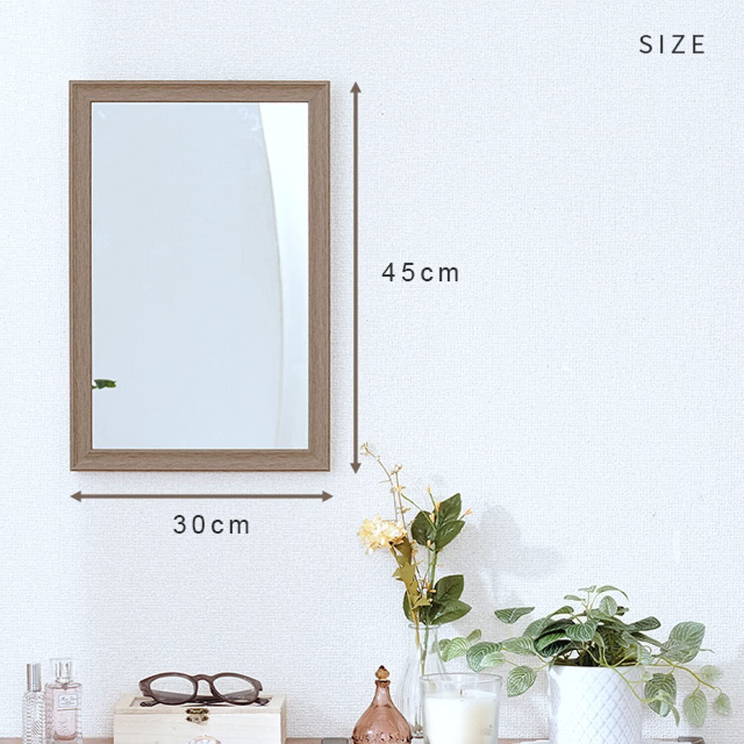 ドウシシャ ウォールミラー 縦でも横でも使える壁掛けミラー 45cm×30cm 飛散防止加工 軽量 姿見鏡 北欧 おしゃれ かわいい 木製フレーム 取付金具 玄関 洗面所 化粧 アンティーク 立て掛けるだけでもOK ブラウン IMW4530BR