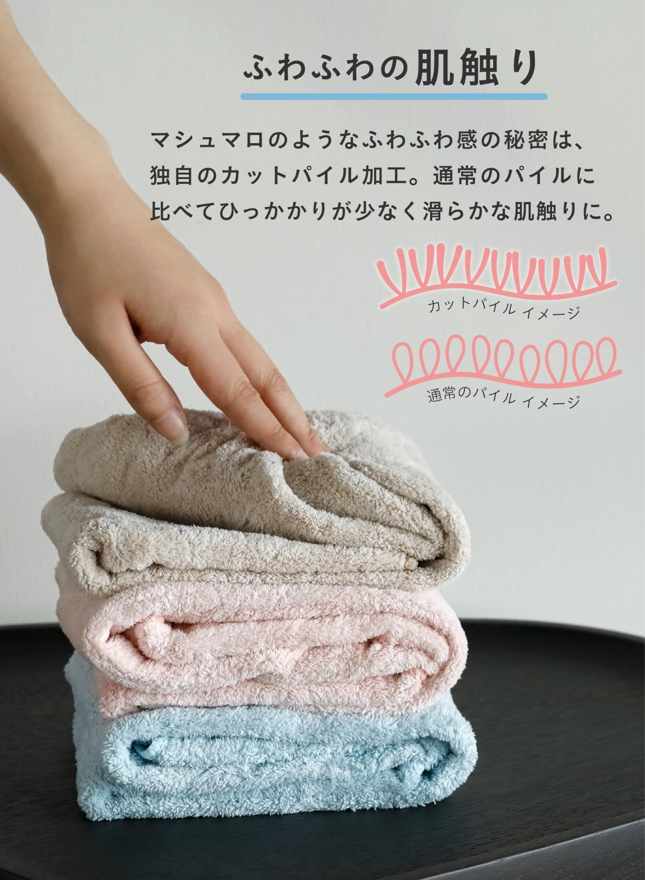 ふわふわもっちり肌ざわりの秘密は独自のカットパイル加工