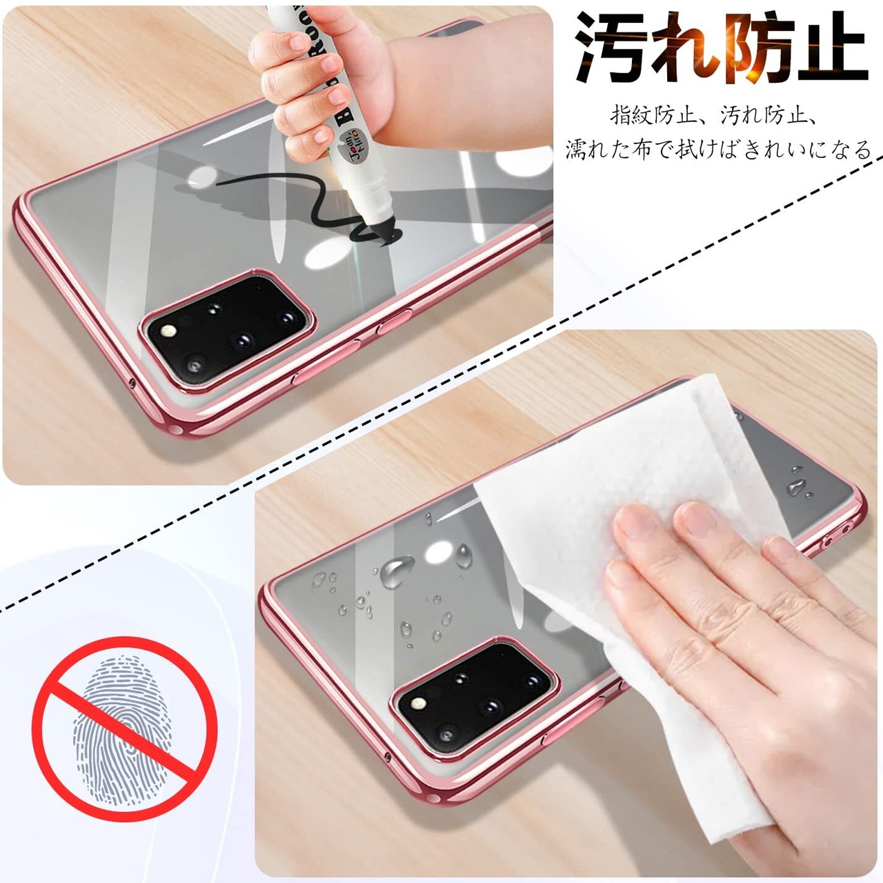Galaxy S20 plus ケース クリア ギャラクシーs20+ SC-52A SCG02 カバー 透明 耐衝撃 軽量 薄型 tpu 背面クリア メッキ加工 スマホケース ソフト ストラップホール付き ワイヤレス充電対応(galaxyS20+, ローズゴールド)