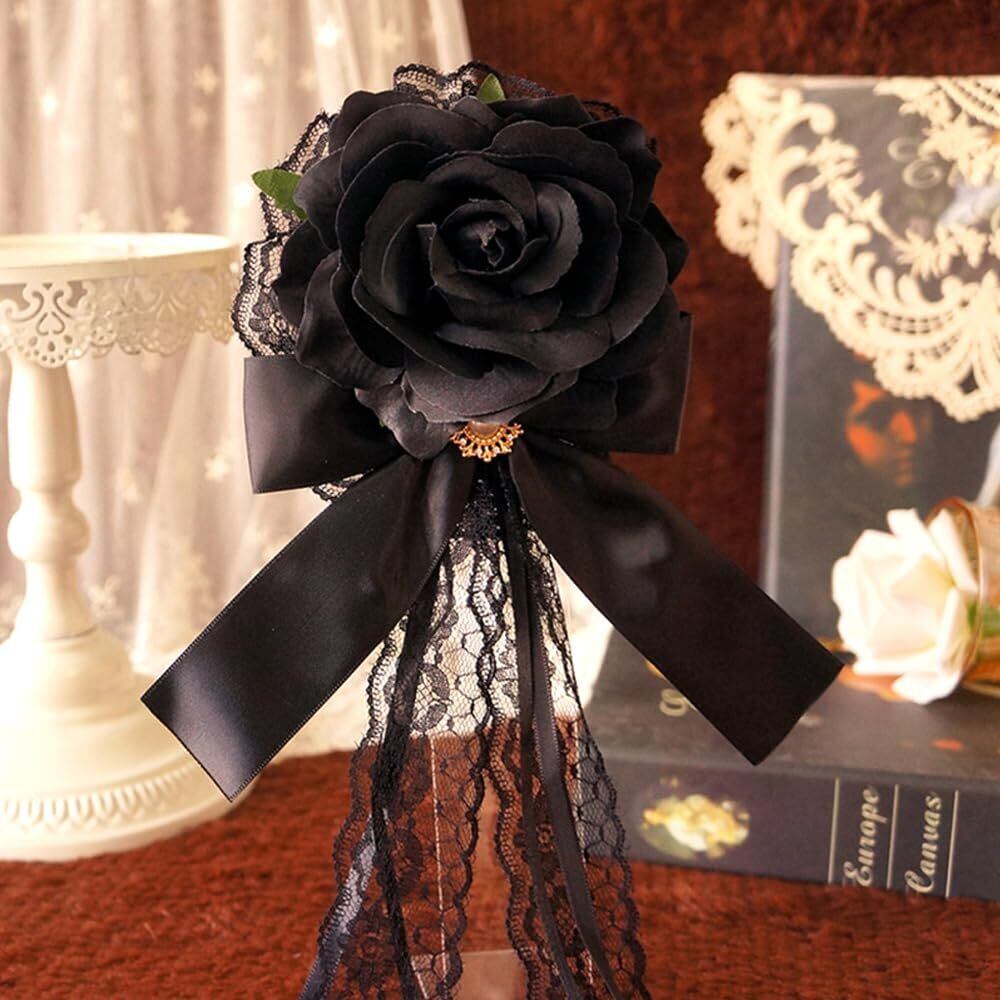 mefeny ヘッドドレス ロリータ 薔薇 バラ ヘアアクセサリー ゴシック ゴスロリ 髪飾り クリップ ブローチ 2in1 披露宴 二次会 発表会 葬式 宴会 可愛い 母の日 ギフト 黒