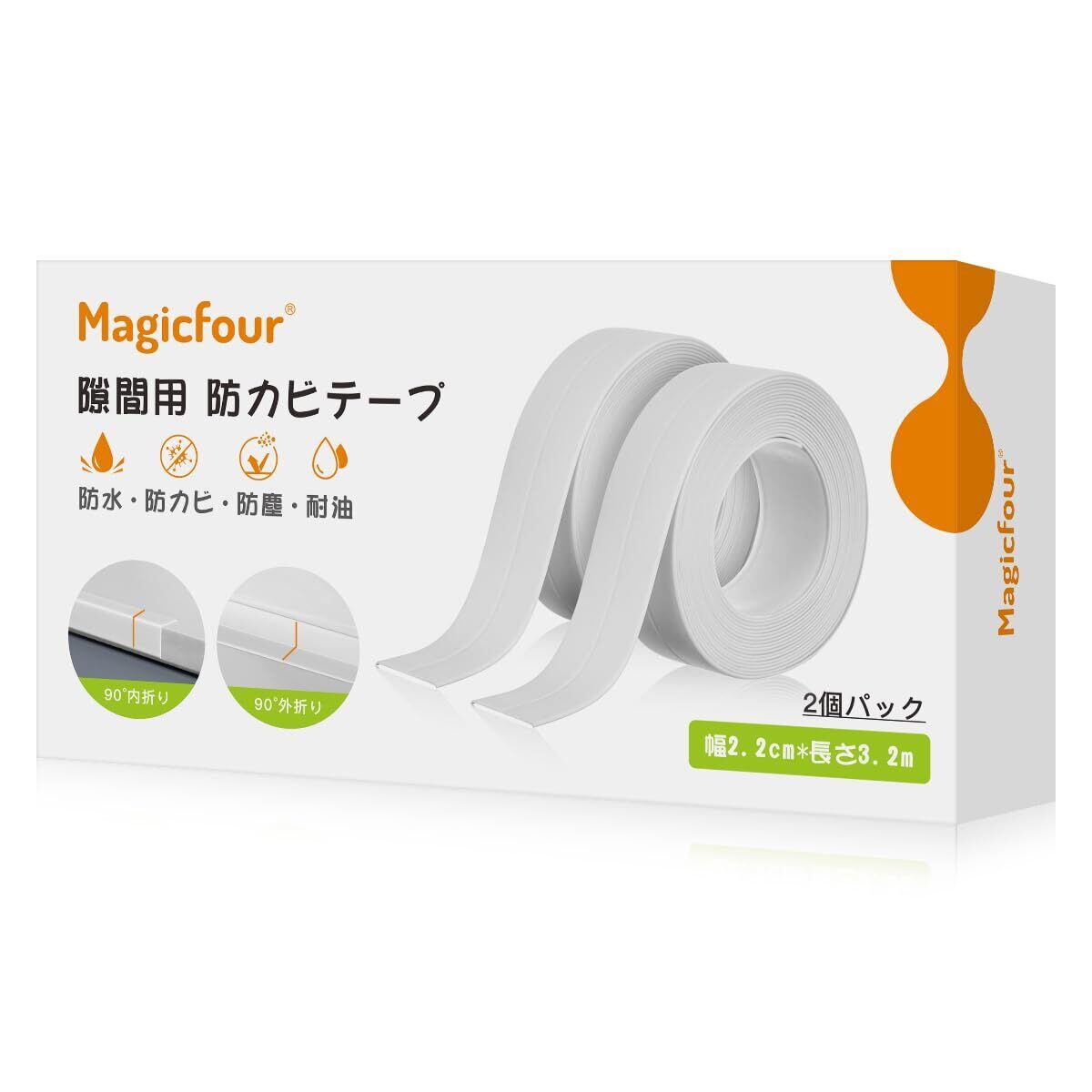Magicfour 防カビテープ マスキングテープ 白 2本x幅2.2cmx長さ3.2m 隙間 防水テープ コーキングテープ 耐熱 折り目 強粘着 汚れ防止 水はね防止 隙間埋め カビ隠し コンロ シンク 洗面台 台所 トイレ 浴室 キッチン