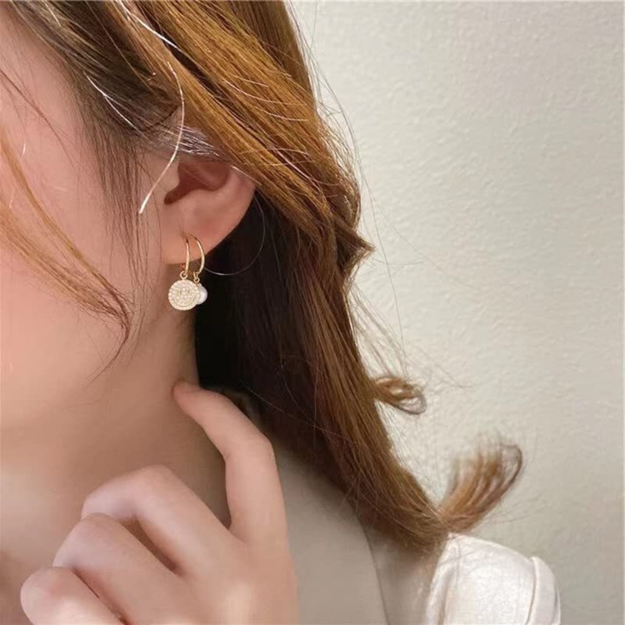 MOUPジルコニアパールピアス レディース 人気 金属アレルギー対応 リング 銀の針 可愛い ピアス 18金 フランス風 つけっぱなし ゆれる 大人