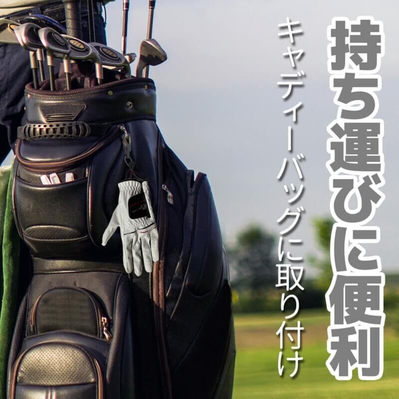 【用途】キャディバッグ、ボストンバッグに取り付け、置き忘れを防止。グローブの型崩れを防ぐハンガーは、グローブの間に隙間を作り、早く乾かすことで雑菌の繁殖を抑えます。空き時間に乾かすことができるので衛生面でも安心。