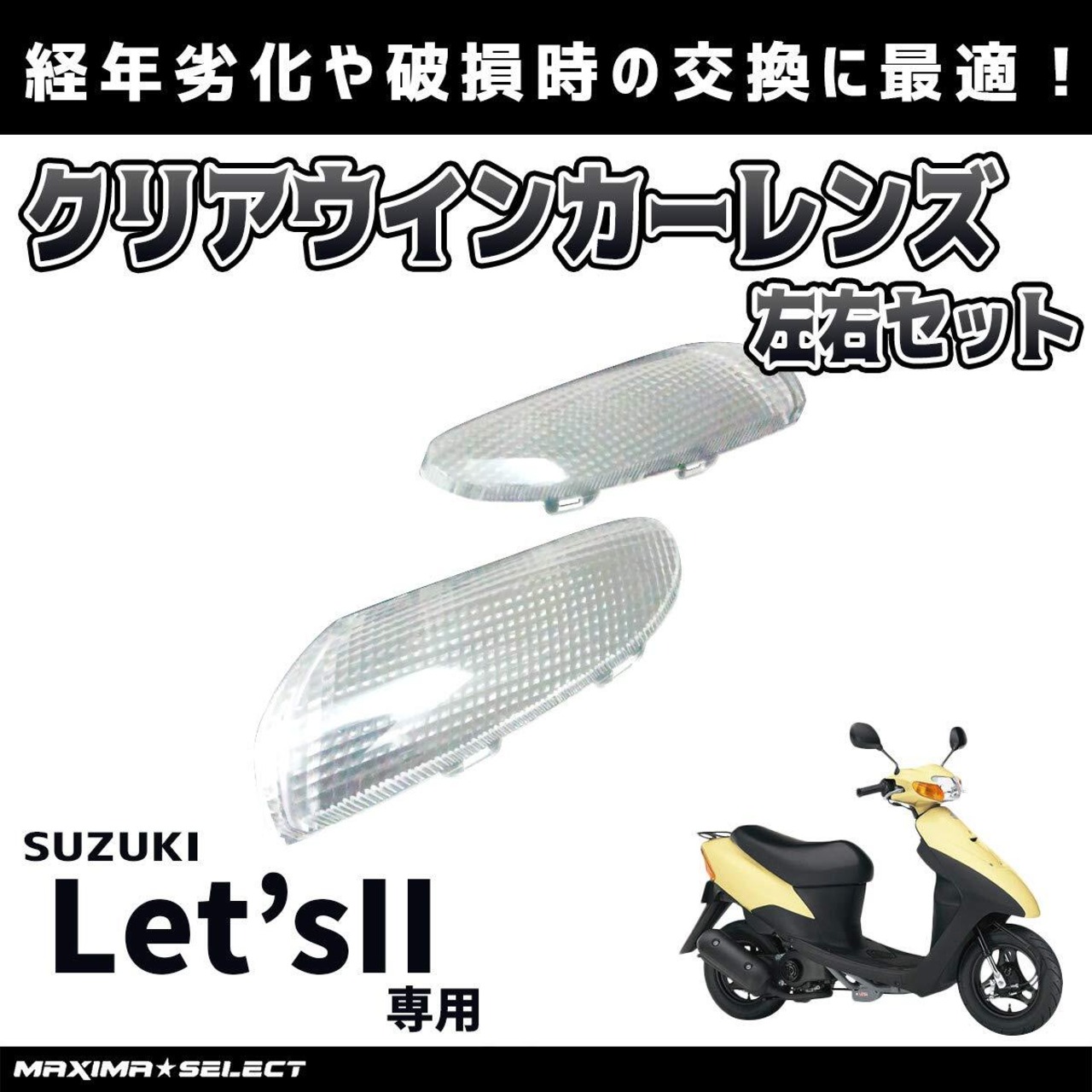 MAXIMASELECT スズキ対応 レッツⅡ CA1PA、CA1PB、CA1PC クリア ウインカーレンズ 破損 修理 交換 などの メンテナンス に suzuki対応