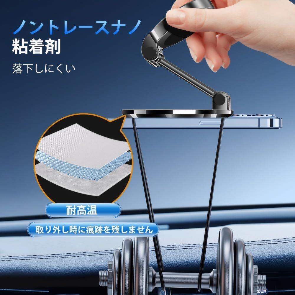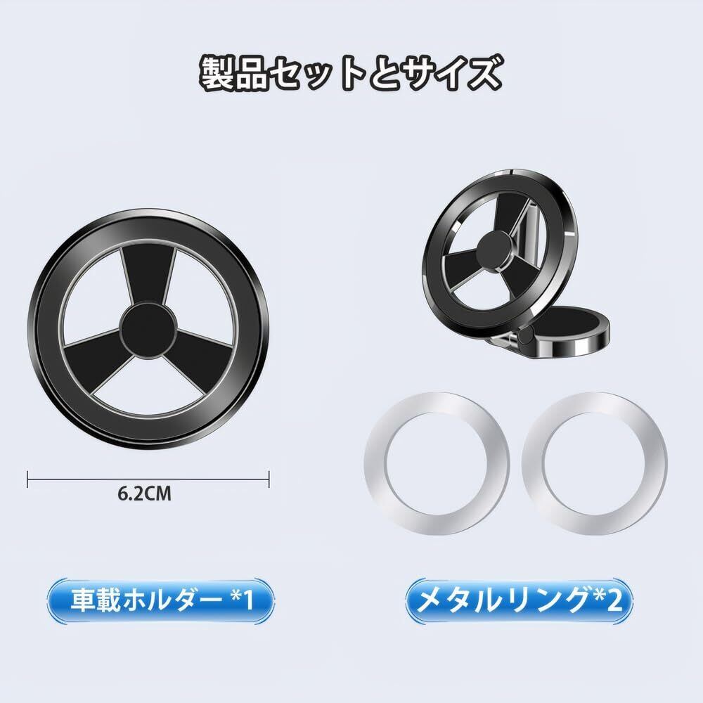 【高品質&進化したMag-safeマグネットスマホホルダー】 この車載スマホホルダーは航空アルミ合金素材を使用し、高級な金属の質感があり、車内のインテリアと相性が良いです。車載ホルダーの表面は磁力面積を広げ、新しいルビジウム磁性材料を内蔵しています。通常の磁石よりも10倍強力な吸力でスマートフォンをしっかり固定することができます。新世代のルビジウム磁石は車の振動や急な曲がり角にも耐え、さまざまな複雑な状況に対応し、安定した位置に保ちます。また、付属の金属リングは磁力を最大限に増強し、スマートフォンをしっかり固定するのに役立ちます