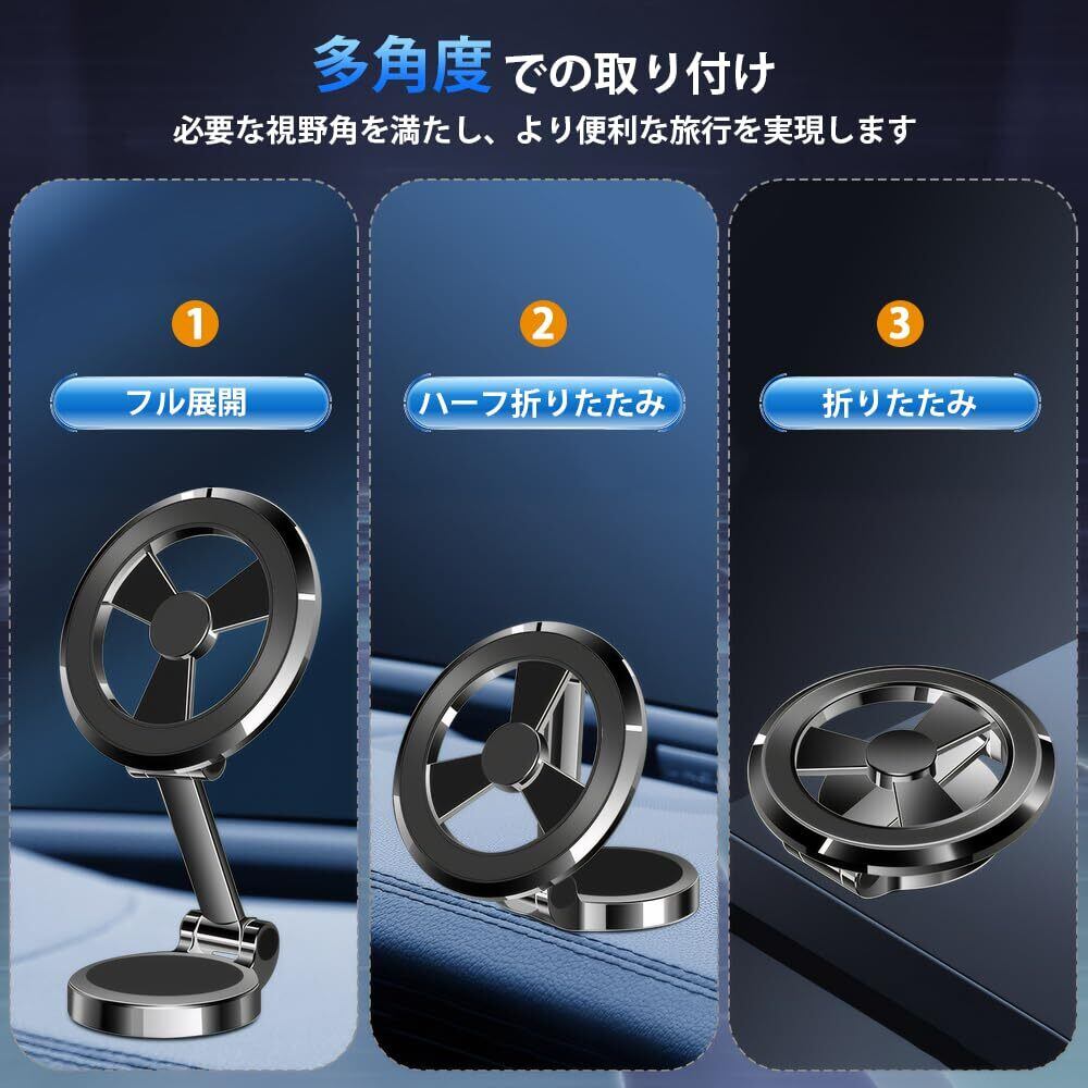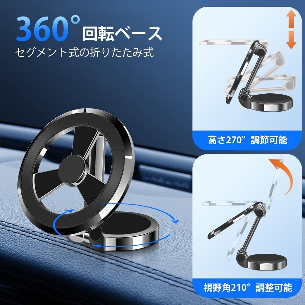 Ninonly スマホホルダー 車 マグネット Magsafe対応 車 スマホスタンド 360度回転 高さ調節可能 折りたたみ式 車載ホルダー 超強磁力 片手操作 マグセーフ 車載スマホホルダー i-phone/Androidなど全種類に対応(メタルリング付き)