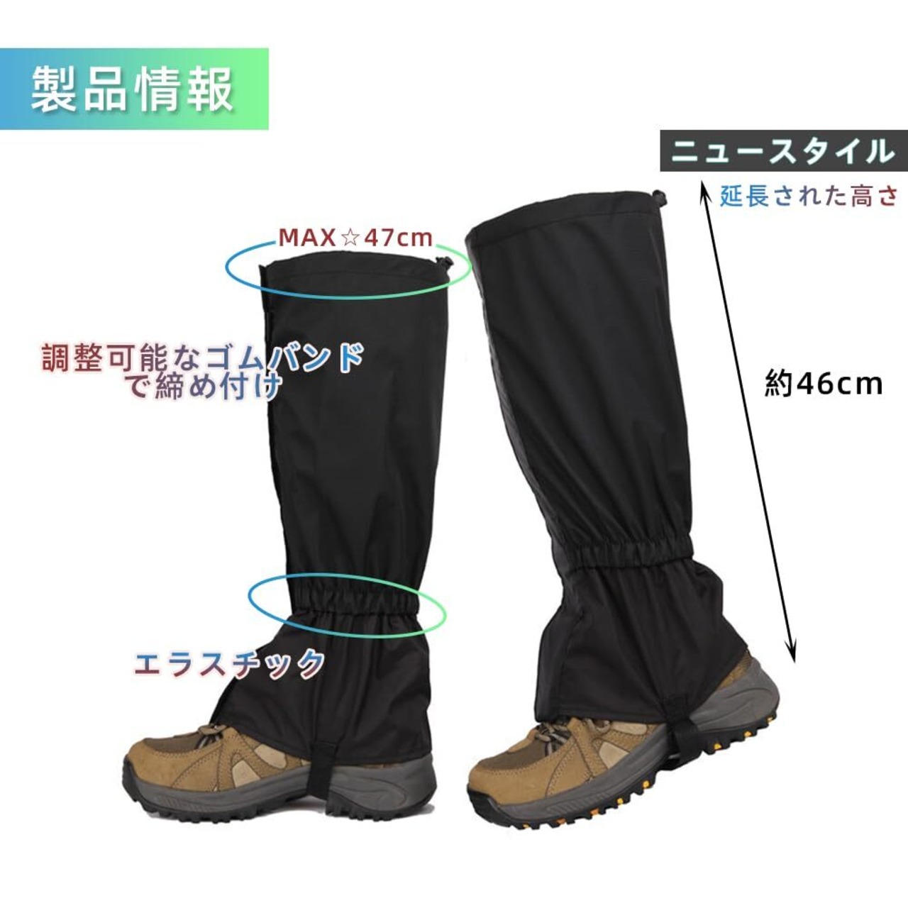 Renjzle レッグカバー 登山ゲイター スパッツ 長さ46センチ ゲーター 登山用 渓流 ゲーター 雨や雪、砂埃や泥汚れから守るレッグカバー 防水 透湿性 はっ水レッグカバー