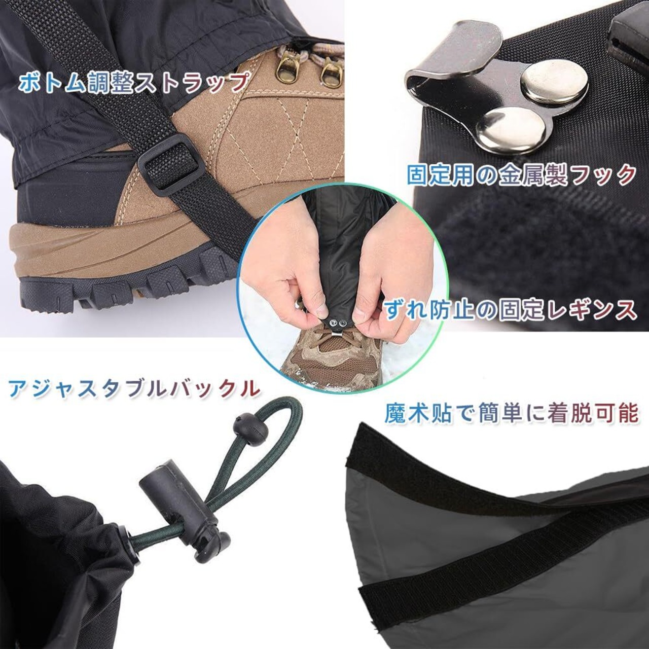 【雨や雪、砂埃、泥汚れからしっかり保護】登山用ゲイター・スパッツは、あらゆる天候や地形に対応し、あなたの足元を完璧に守ります。あらゆる自然環境での登山に欠かせないアイテムです。雨や雪、砂埃や泥汚れから足元を徹底的に守り、登山中の快適さを保ちます。自然の中での冒険を楽しみましょう!