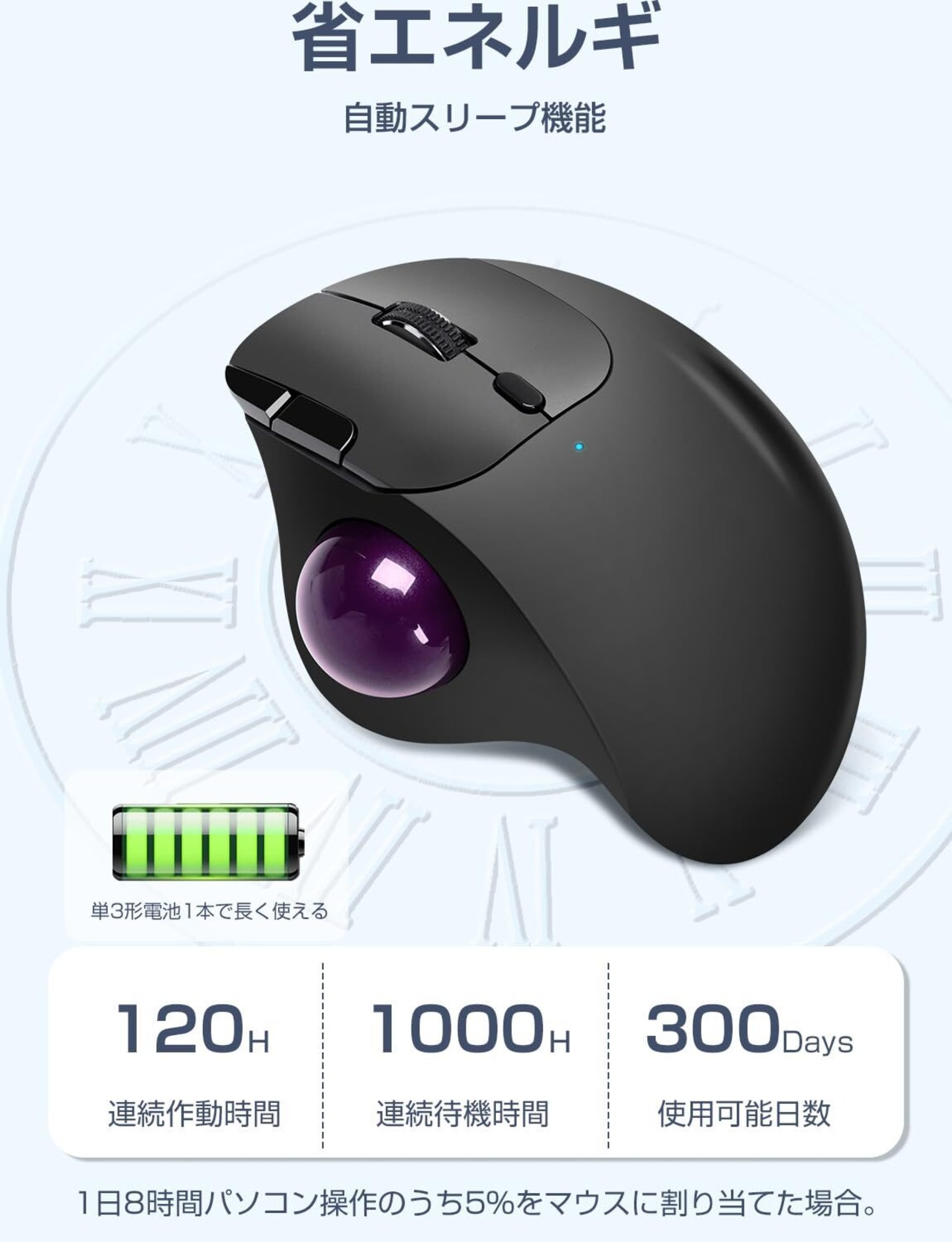 【最大18ヶ月の長寿命電池】省電力技術を採用し、たった単三形乾電池1本で最大18ヶ月間も電池交換不要で快適に使用できます。また、便利なステータスインジケーターも備えています。【静音設計で騒音を軽減】クリック音を静かに抑えた設計で、従来のモデルと比べて90%以上も騒音を軽減。カフェや図書館などの静かな場所でも、周囲を気にせずに作業に集中できます。【広範な互換性】Windows 8.0、Windows 10、Windows Vista、Mac OSX 10.10以降、Android 4.3以降、iOS 8.0以降のBluetooth搭載デバイスに対応。幅広いデバイスで使用可能です。
