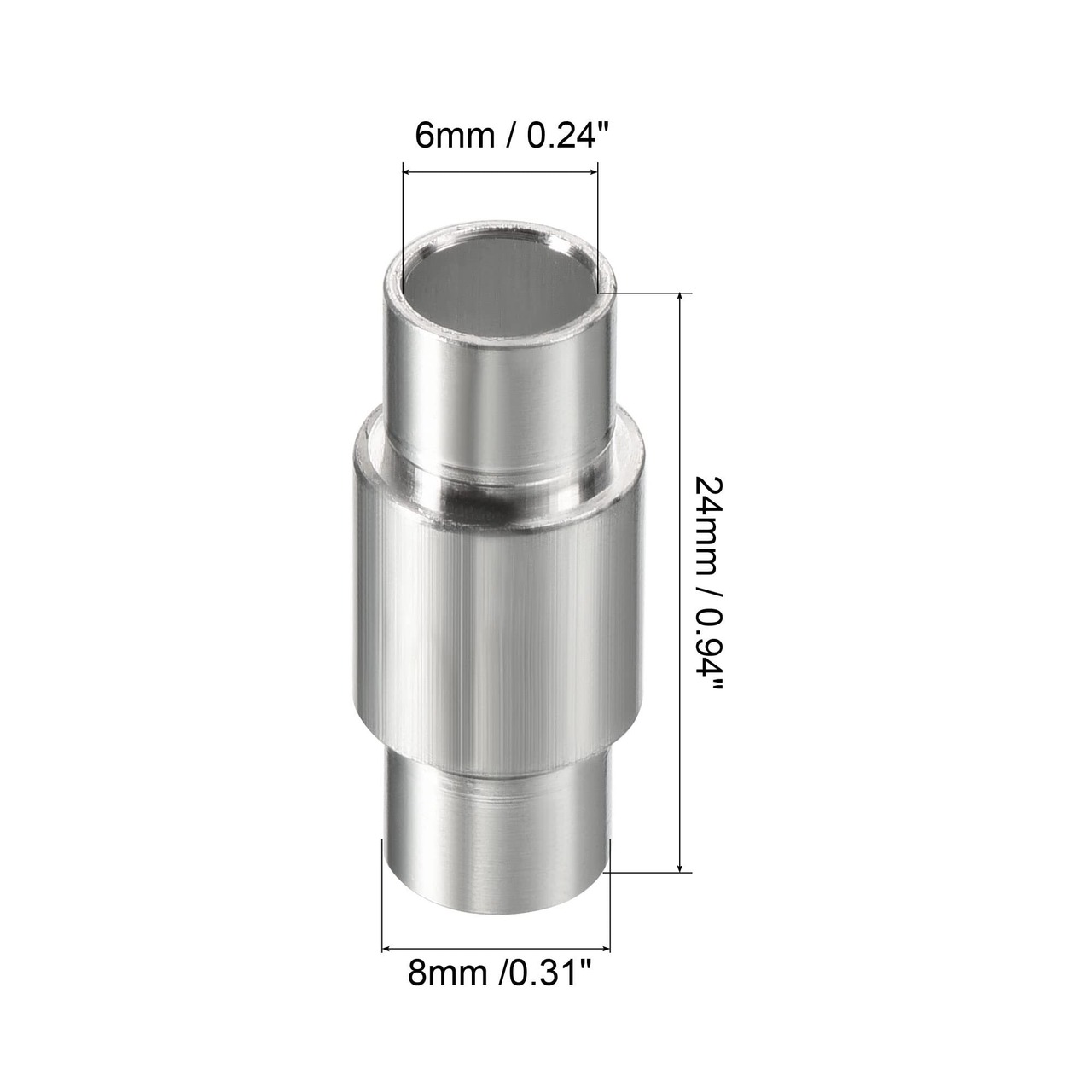 カラー:シルバー; 素材: アルミニウム; サイズ:8 x 6 x 24mm (外径*内径*H); パッケージ内容:8 x スペーサー