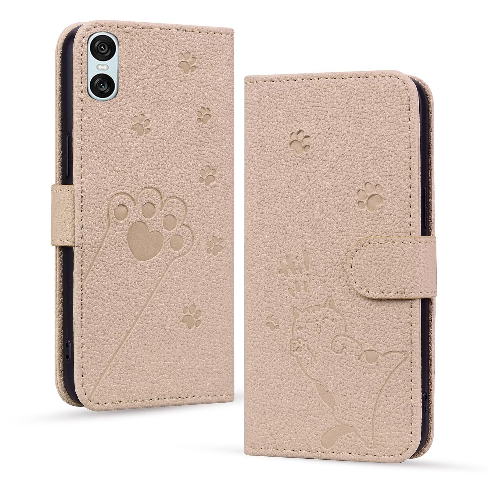 Sony Xperia 10 VI ケース 手帳型 【Mldjomid】SO-52E/ XQ-ES44 カバー SOG14 カバー 手帳型 幸せな子猫 内蔵マグネット カード入れ 軽量 PUレザー 全面保護 スタンド機能 カード収納 Xperia 10 VI ケース エレガントなシンプルさ 人気 上質 エクスペリア10vi ケース かわいい猫の足模様 (アプリコット)