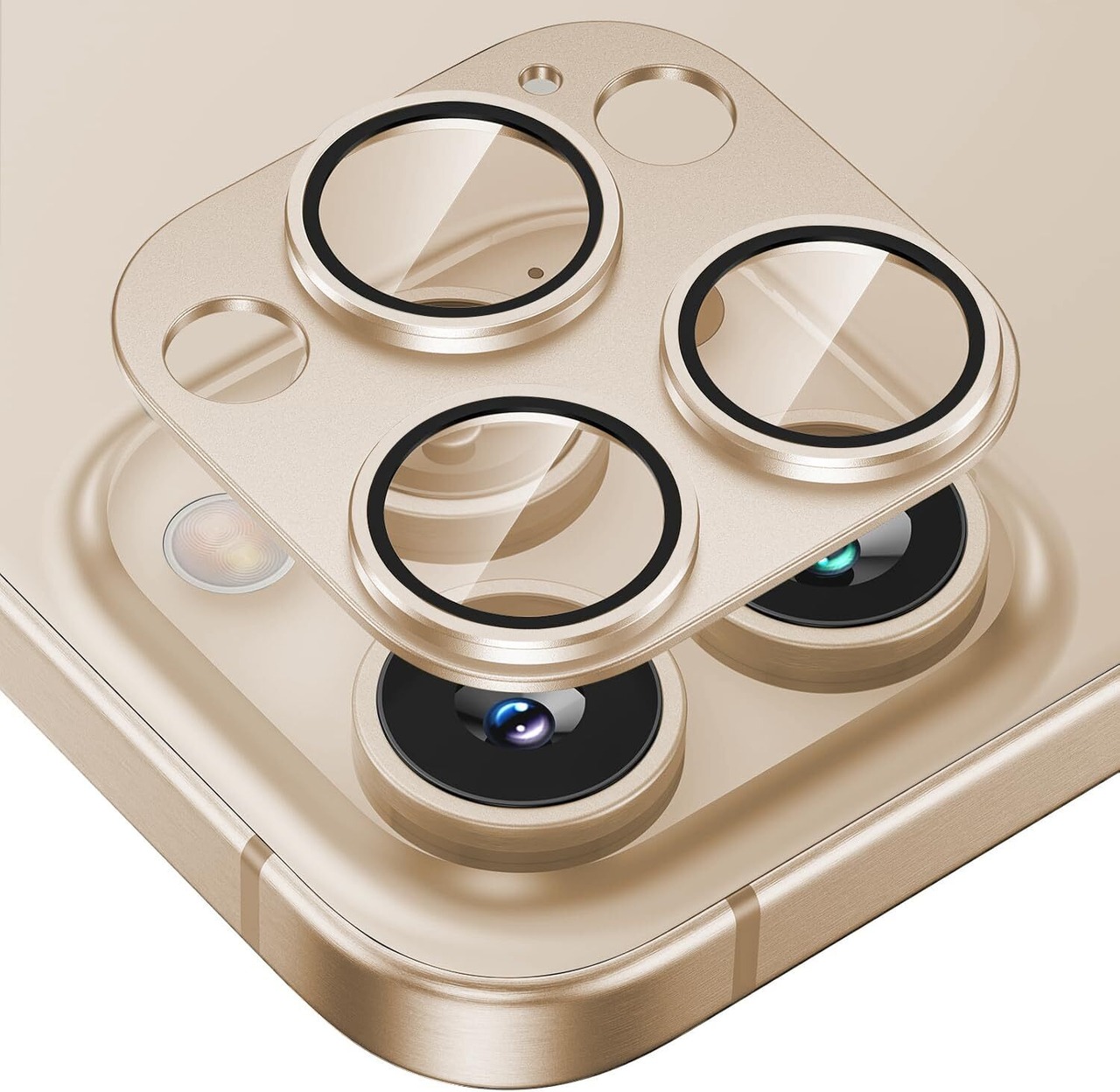 Hohotoon iPhone 16 pro/iphone16 pro maxカメラフィルム アルミ合金製+AR高透過率強化ガラス レンズカバー 0.25mm超薄 一体型カメラ保護カバー アイフォン16pro/16pro max用カメラ保護フィルム 3眼 レンズ保護ケース 9H 防爆裂 耐衝撃 粘着性強い スクラッチ防止 露出オーバー防止 ケースに干涉なし(ブラウン)