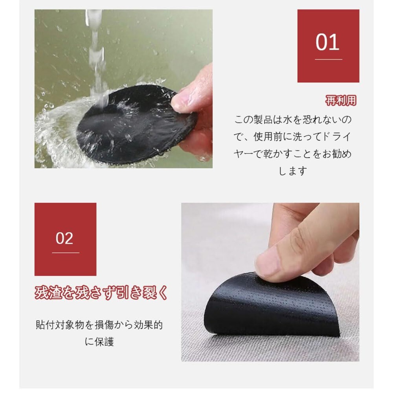 【耐久性抜群】粘度が高く吸引力が強く、はがれにくく、はがれ后に迹がなく、洗浄効果があり、再使用が可能です、ドライヤーで温めると粘着力がUPします。