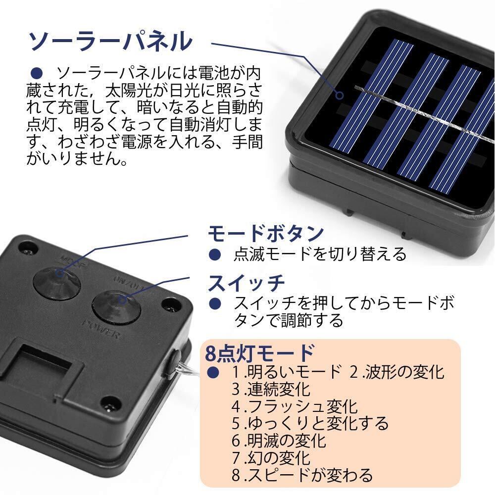 イルミネーションライト ソーラー 屋外 IP65防水で雨や雪が降る日でも心配なし 気分で選べる8パターン点灯できる 100球 10M クリスマス・誕生日パーティー・結婚式などの飾りに最適