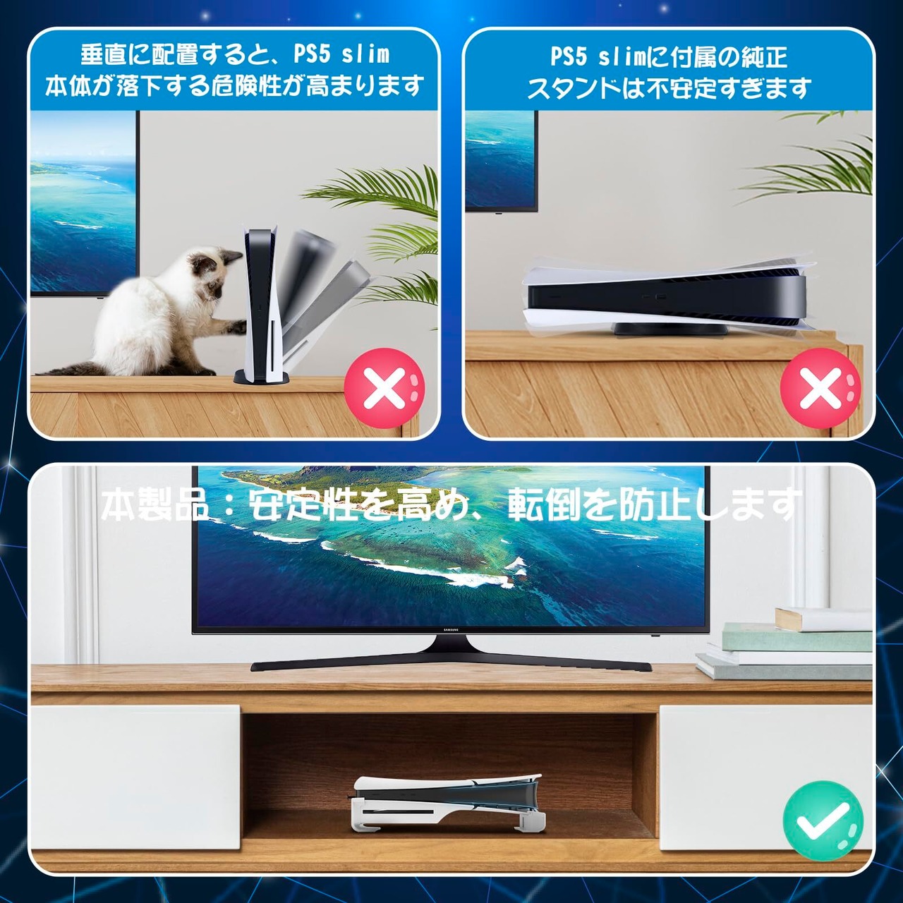 【互換性】この横置きスタンドは、PS5 Slim ディスク版およびデジタル版、PS5 Pro デジタル版に対応しています。PS5/PS5 Pro ディスク版には対応していません。