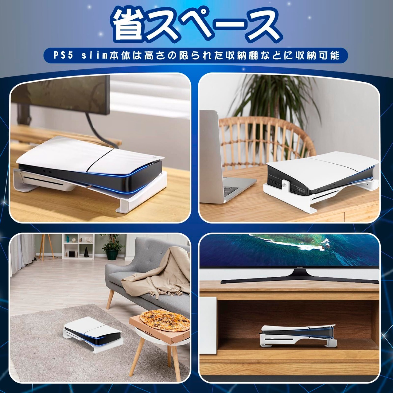 【省スペースデザイン】このスタンドを使用することで、PS5 Slim本体を収納棚やキャビネットに収納でき、スペースを有効活用しながら部屋を整理整頓できます。