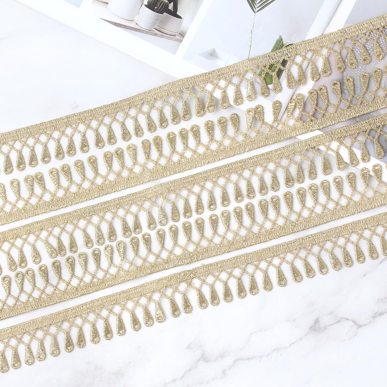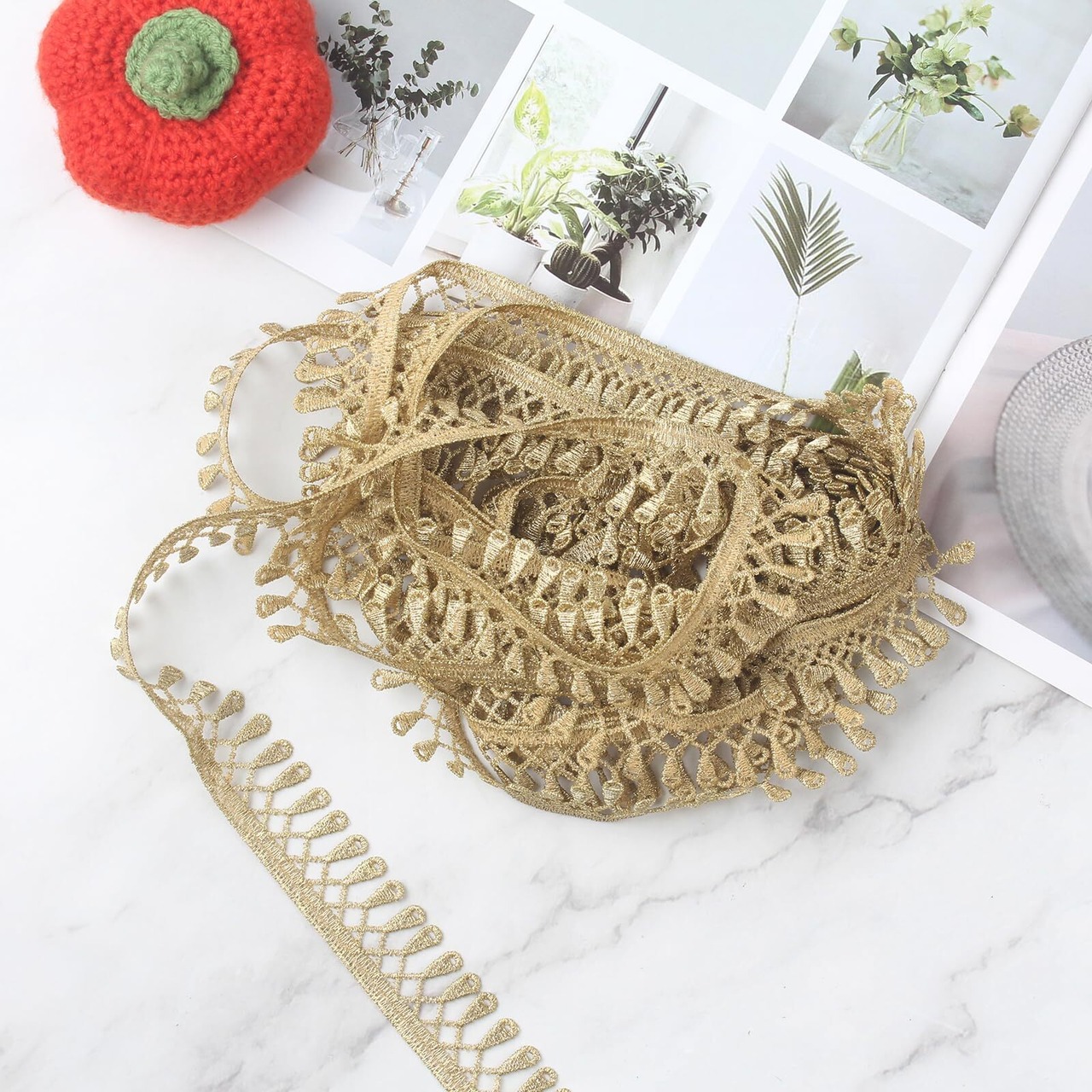 4.5m レースリボン トリム 飾り 刺繍 (#L86 金色 4.5m)