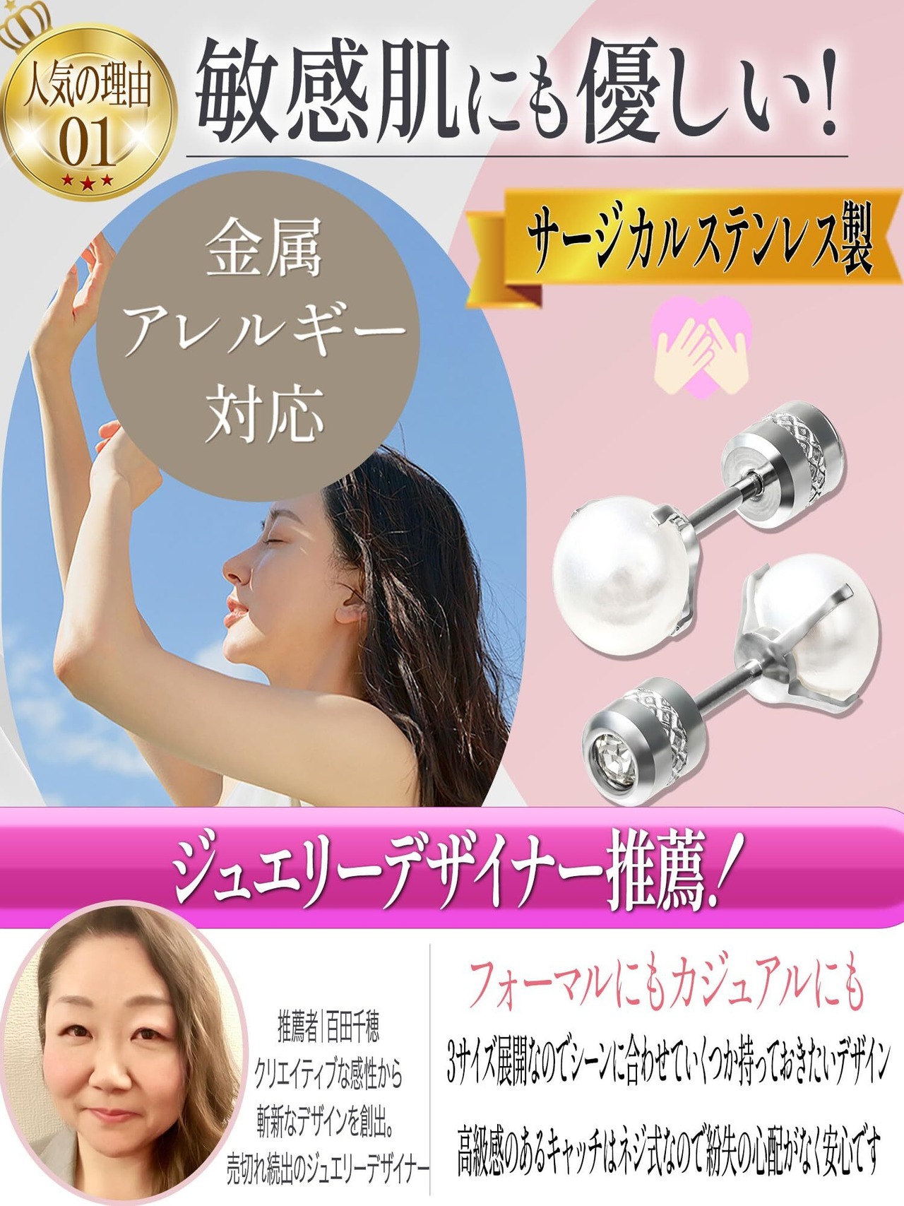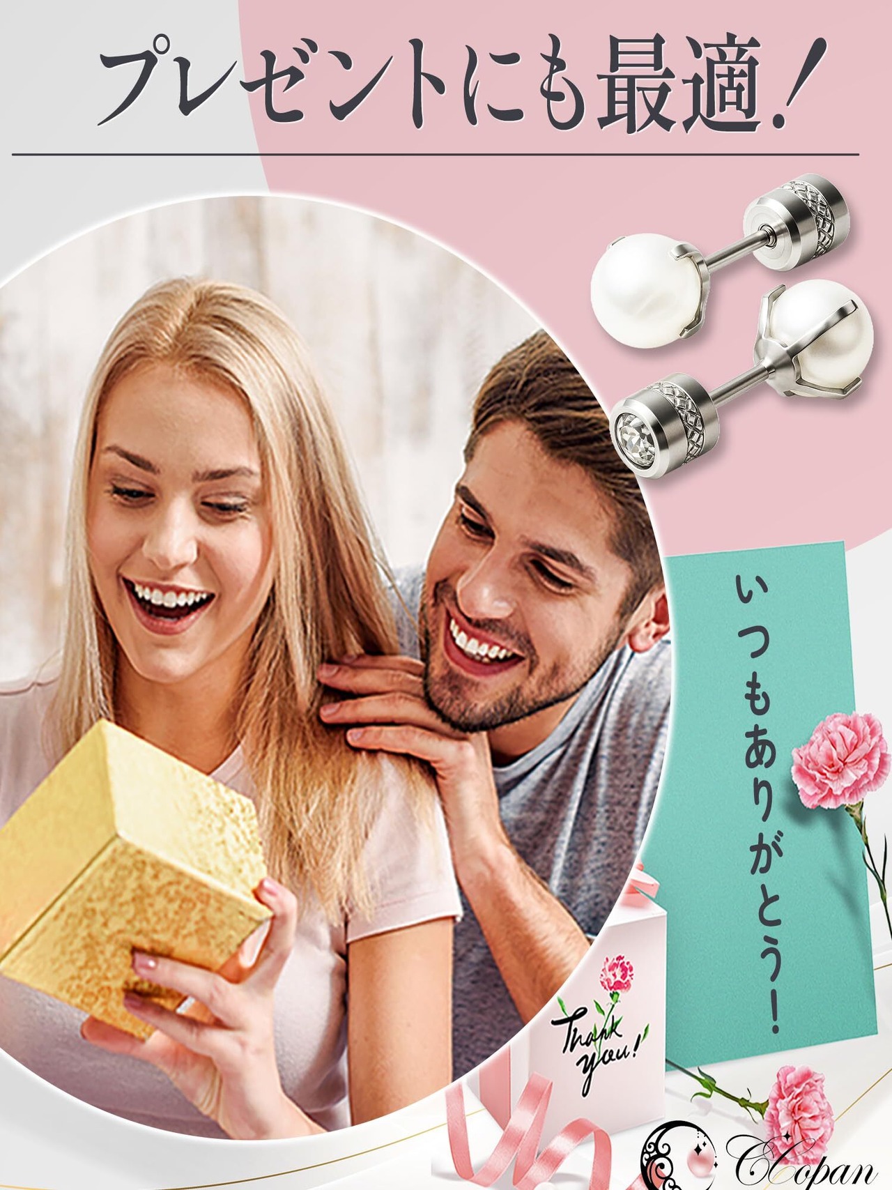 【ジュエリーデザイナー推薦 雑誌掲載】 CCopan ピアス つけっぱなし 金属アレルギー対応 ファーストピアス セカンドピアス サージカルステンレス メンズ レディース ネジ式 両耳 2個セット (パール5mm)