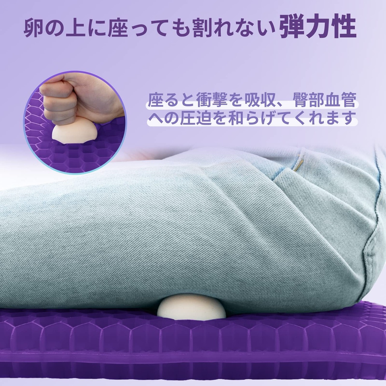 【ジェル素材・衝撃吸収】クッション性に富んだゲル素材を使用。ジェルクッション特有のクッション性で座るとき体の重さと座面からの圧迫を吸収。おしりにやさしい。