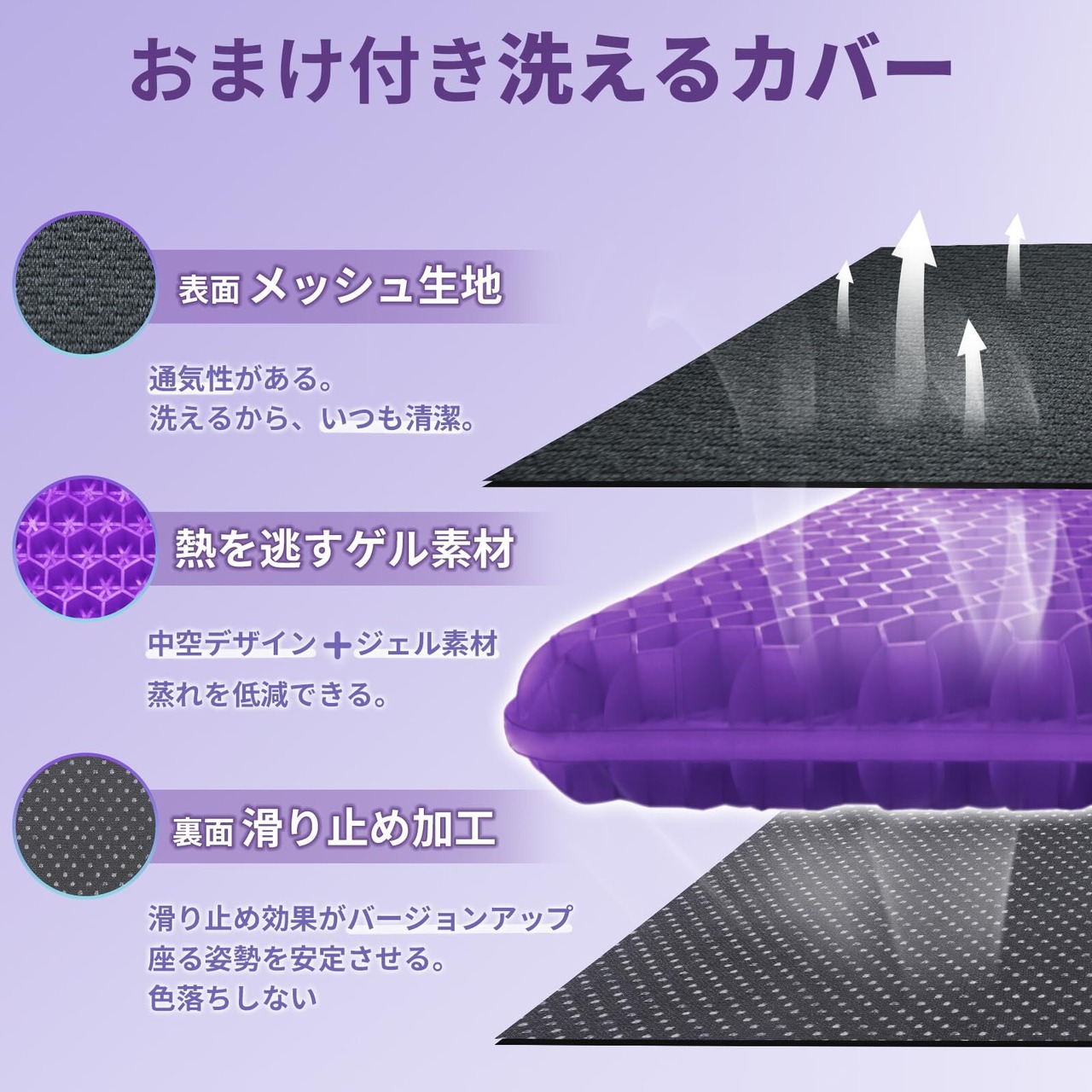 チチロバ(Titiroba) ゲルクッション 特大 クッション 座布団 カバー付き 【スペシャルビッグサイズ】 敬老の日 ZD-03-Z パープル 44×47×3.5cm