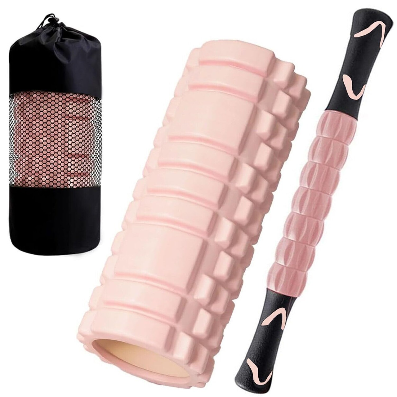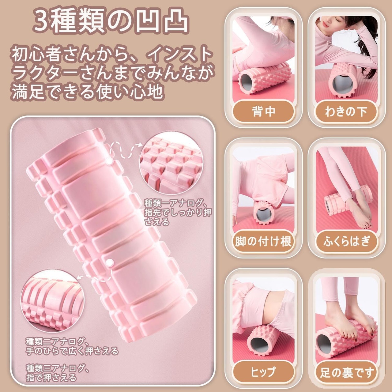 フォームローラー 筋膜リリース ヨガポール セット ストレッチ スティック ローラー ショート ハーフ エクササイズ トレーニング 器具 初心者 超軽量 きんまくりりーす ローラー 収納袋付き(ライトピンク)