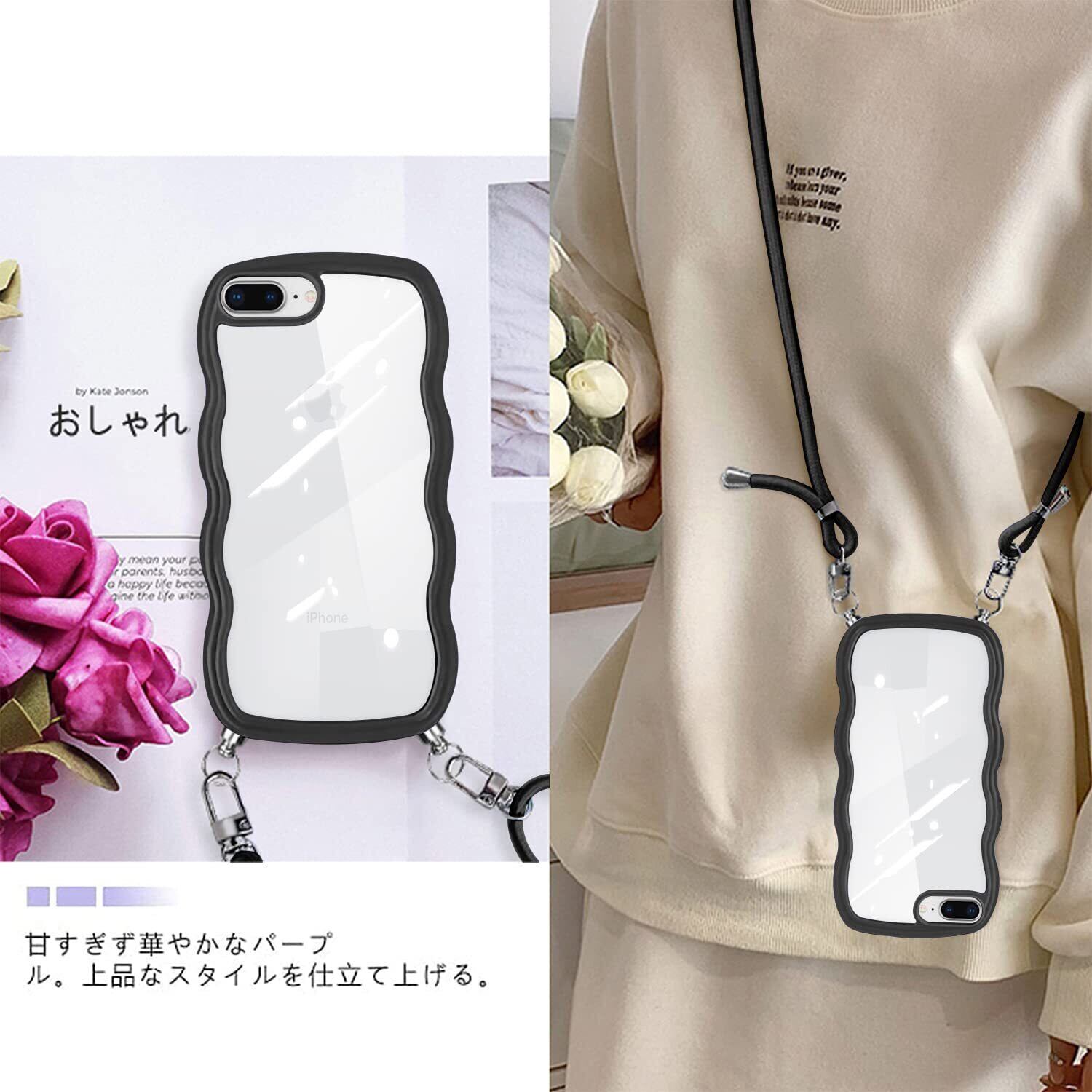 iPhone8 Plus ケース ショルダー クリア カバー iPhone7plus/iphone8plus スマホケース 創意 個性 肩掛け 首掛け 斜めかけケース 可愛い かわいい 韓国 透明 TPU 薄型 耐衝撃 シリコン TPUバンパー アイフォン7plus/8plus(ブラック)