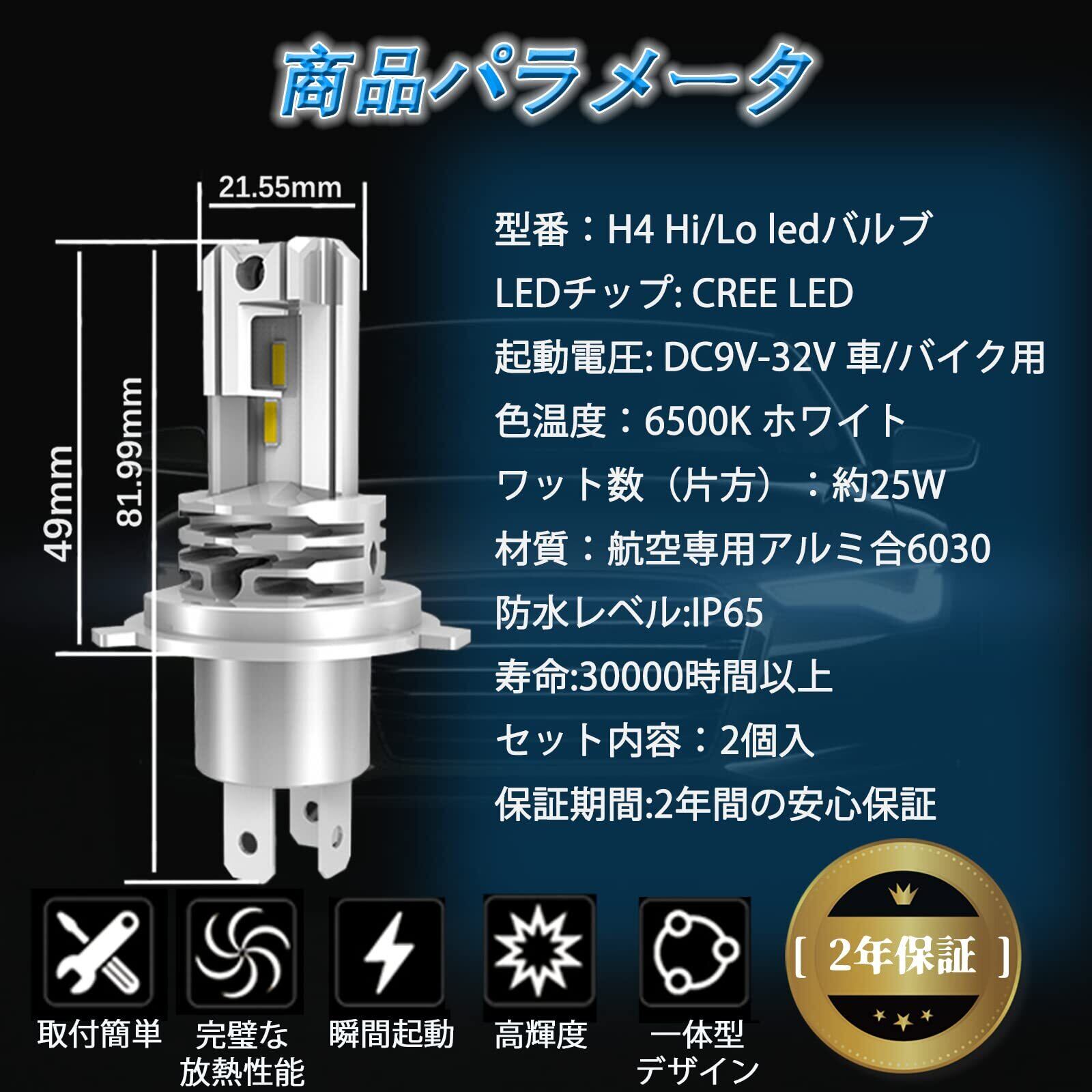 【高輝度ledチップ】h4 led ヘッドライトに高品質のCREEチップを搭載し、照射範囲が広く輝度がて持続し、純粋なハロゲンランプより2倍以上高く視認性の高い6500Kの白色光は路面や側道の障害物を見やすく、夜間走行の視認性を高めた。