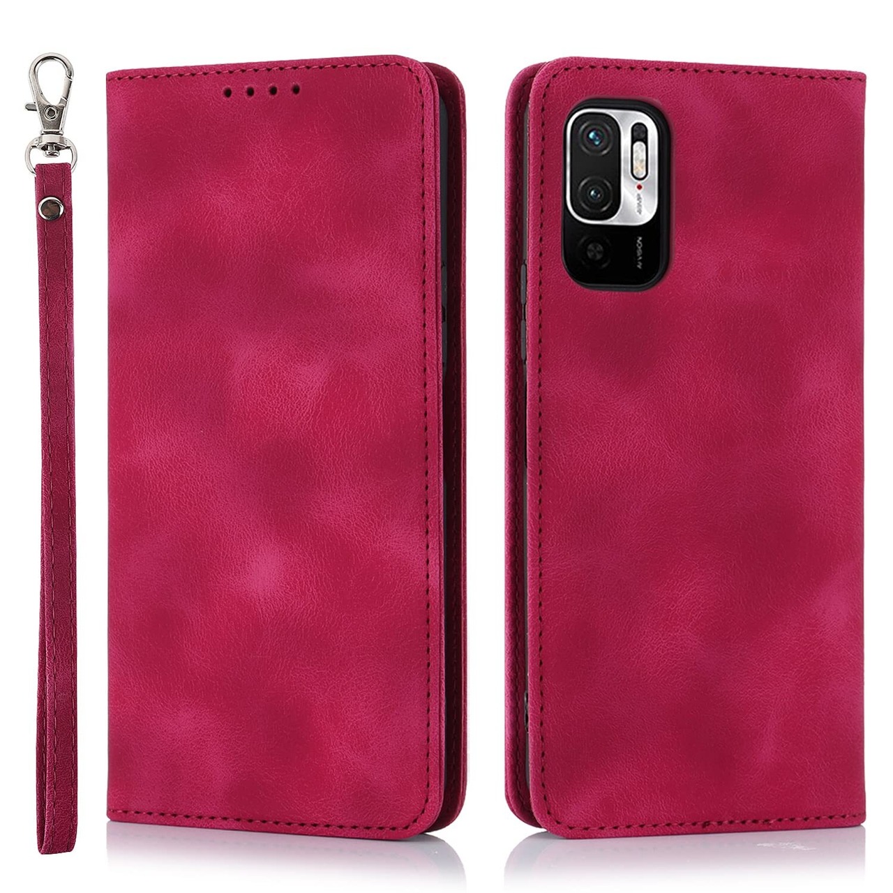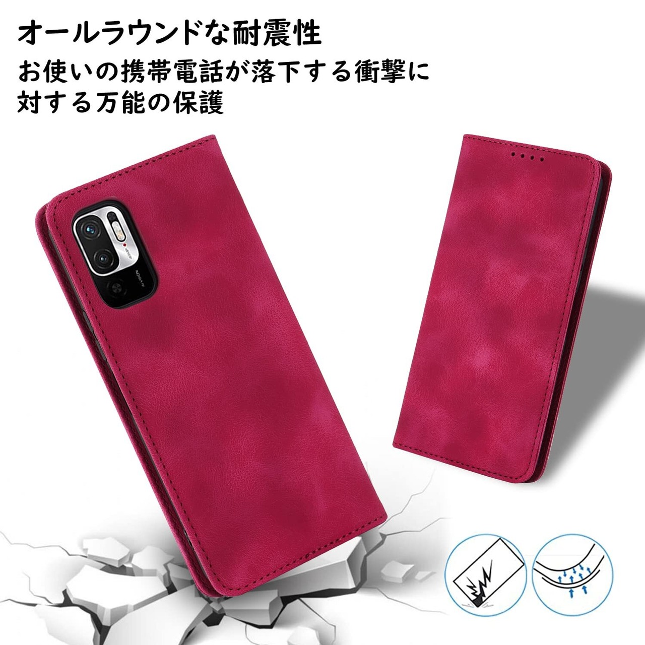 Havaya Redmi Note 10T ケース Redmi Note 10 JE ケース xig02 ケース 手帳型 ストラップ au ノート10 JE 耐衝撃 カバー docomo Xiaomi マグネット式 カード収納 SoftBank スタンド機能 レザー スエードの質感-ローズレッド