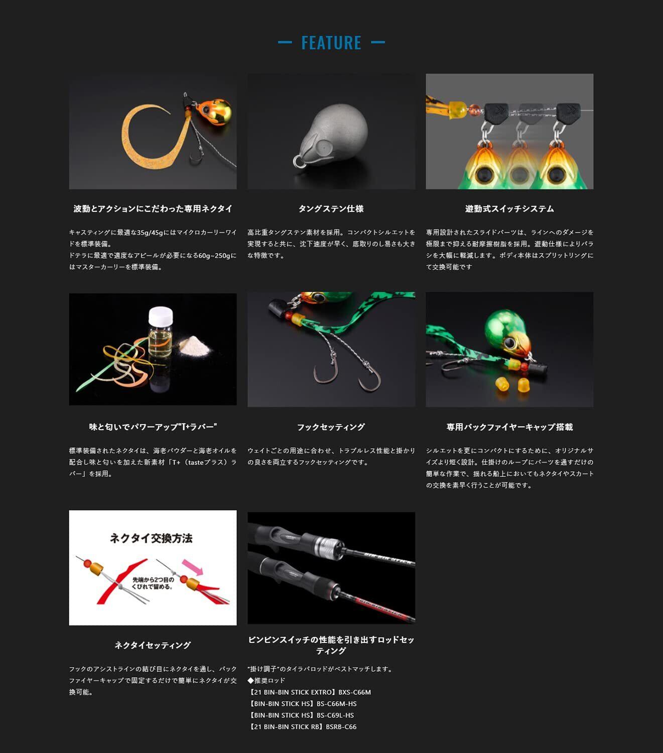 素材:高比重タングステン(TG) / 搭載ネクタイ: ビンビンスイッチT+ネクタイ マイクロカーリー ワイド