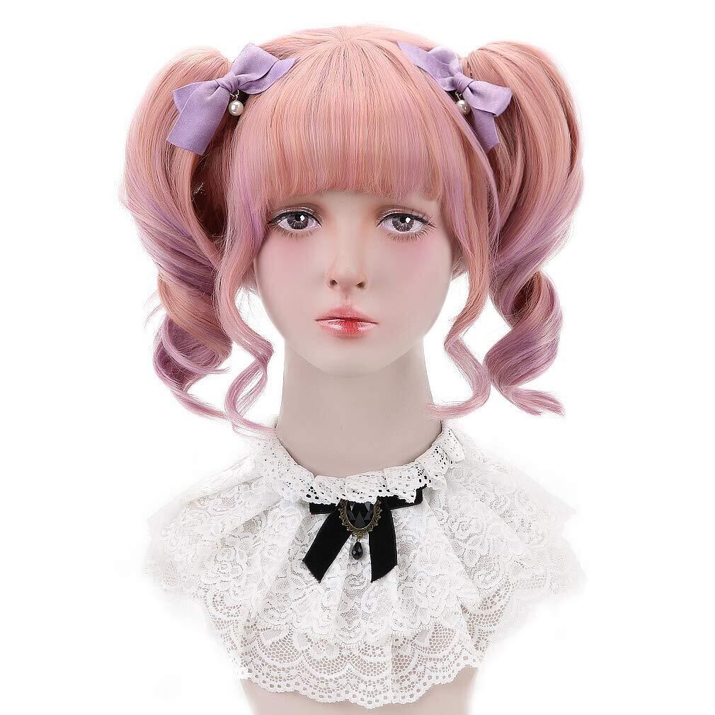 Free Beauty ウィッグツインテールコスプレ用ロリータ原宿風変装ピンクポニーテールパープルコスチューム小物ショートポニーテール