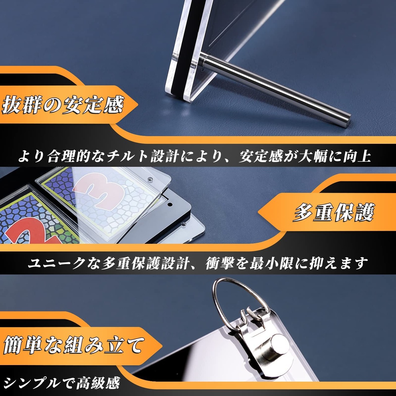 UVプロテクト:2連スクリューダウン カードスタンドこれらのフレームはアクリル板で作られた。全てのフレームは紫外線抵抗のです。あなたの大切のカードを保護でき、火傷を受けません。蛍光灯の下でカードが色落ちません。