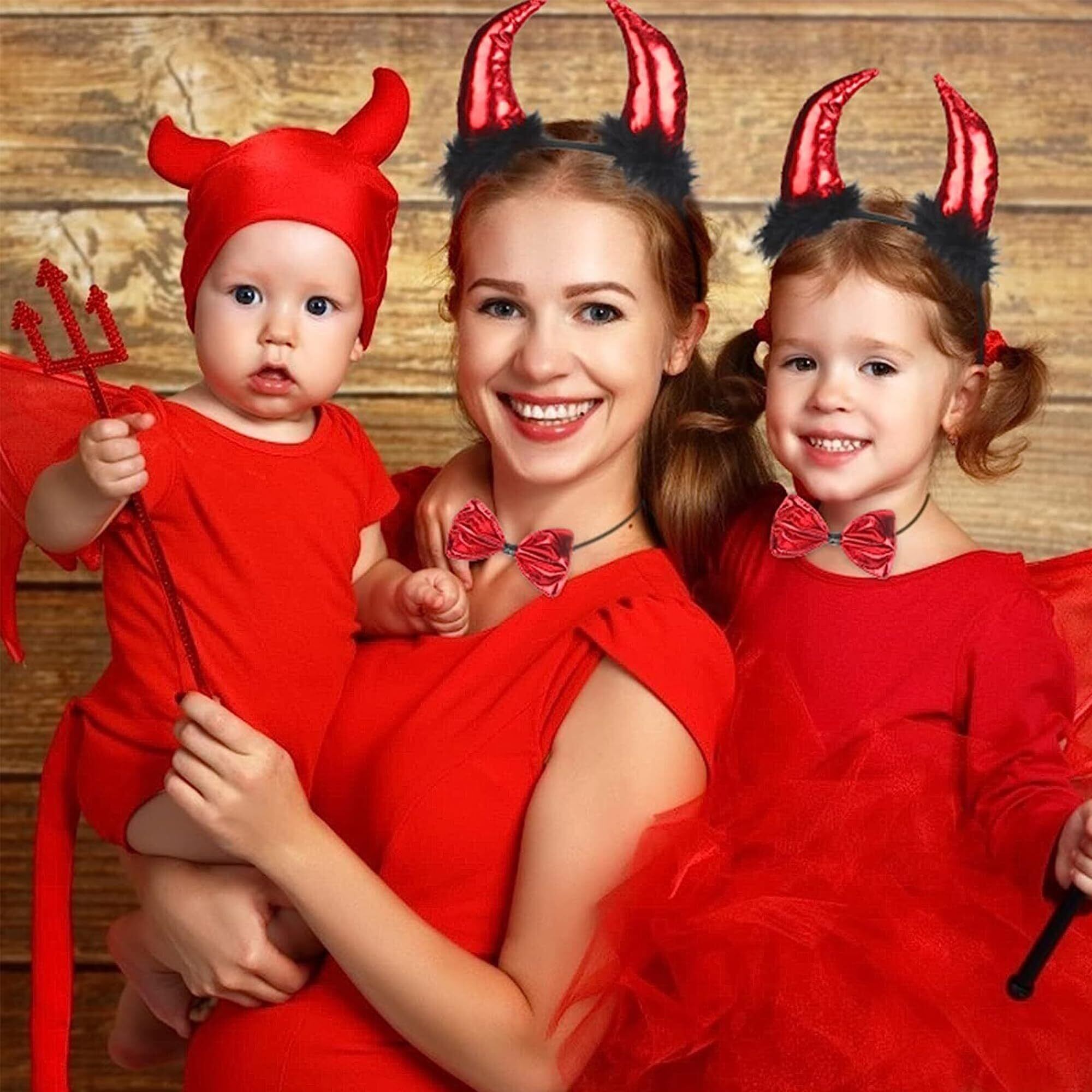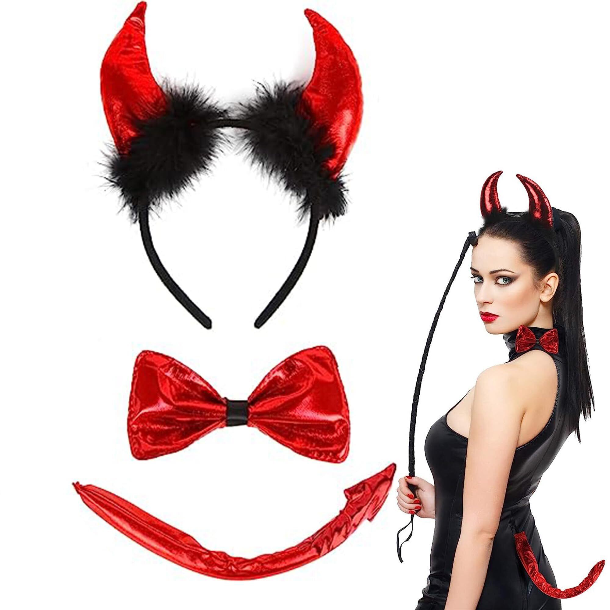 [DERAYEE] ハロウィン コスプレ 悪魔の角 悪魔のしっぽ 悪魔スーツ 3点セット 尻尾 カチューシャ付き 鬼 パーティー 蝶結びボー コスチューム 小道具 仮装用