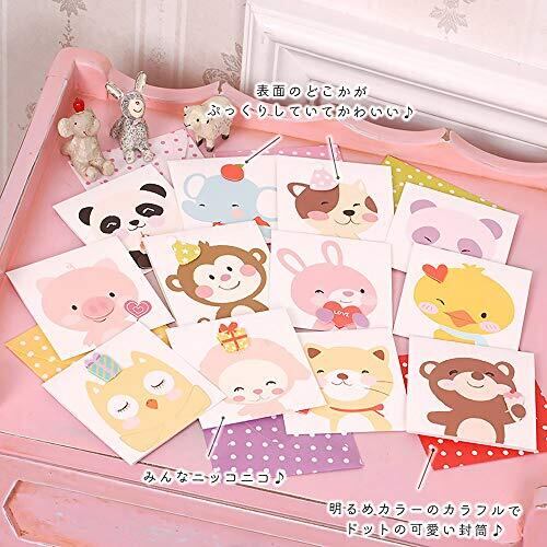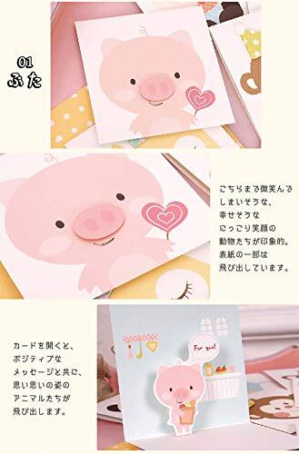 moin moin メッセージ カード にっこり 笑顔 アニマル | ミニ 小さめ 飛び出す 3D | カード + 封筒( 水玉 ) 12種セット (ぶた/ぞう/羊/さる/くま/猫/ひよこ/ぱんだ / / 犬/うさぎ/ふくろう/子パンダ) 2008me124