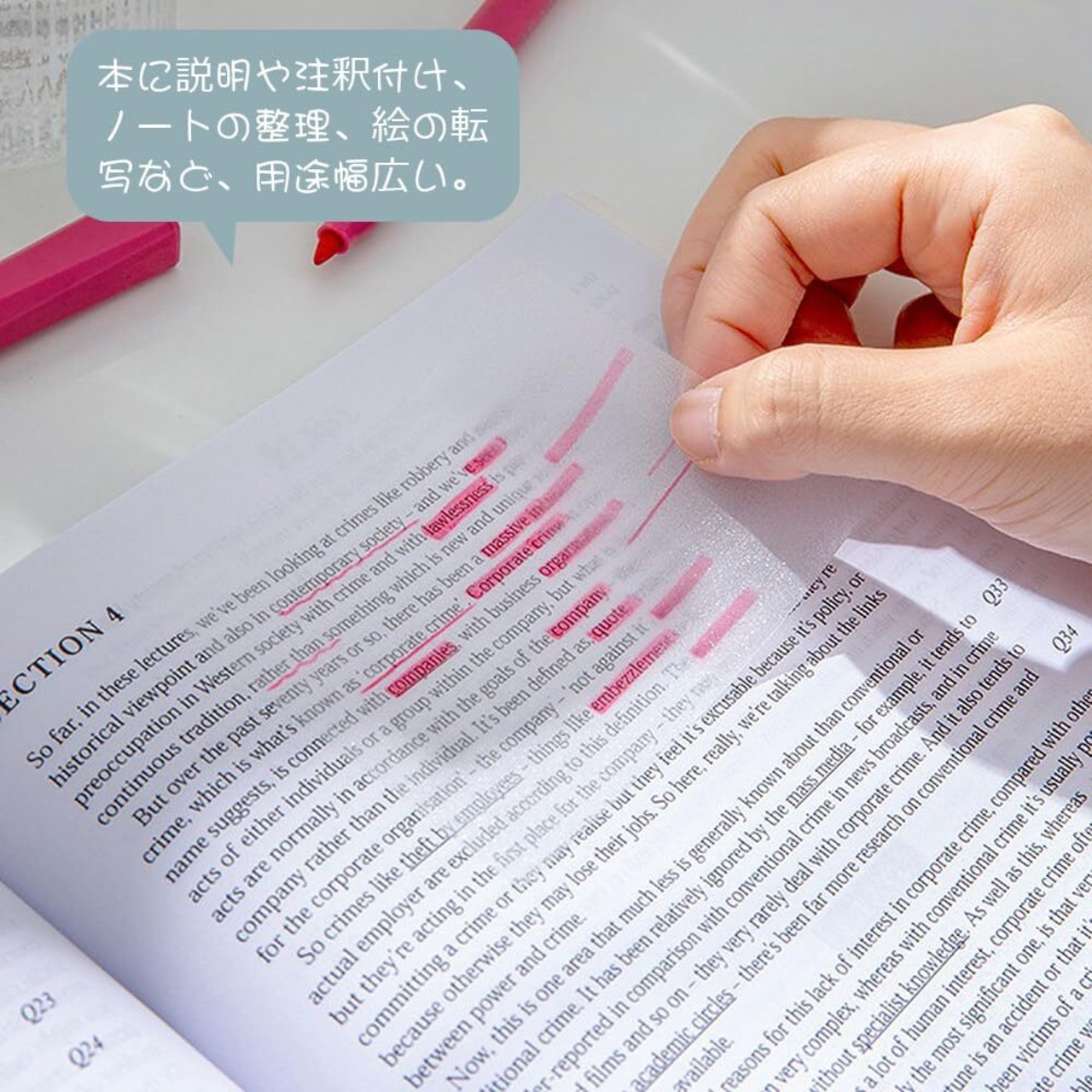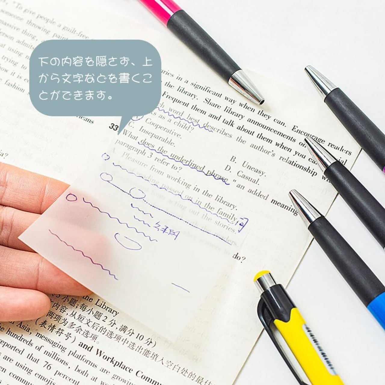 【透明なデザイン】透明なので目立たず、書いた文字が一層際立ちます。見やすく明瞭なメモを残すことができます。