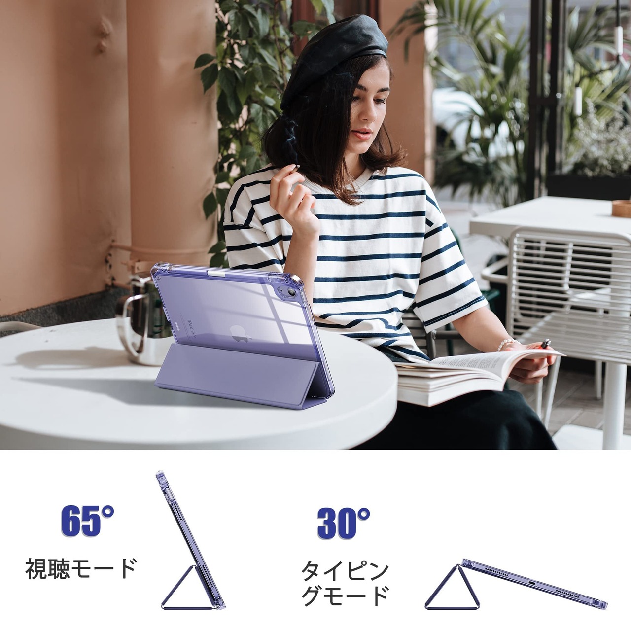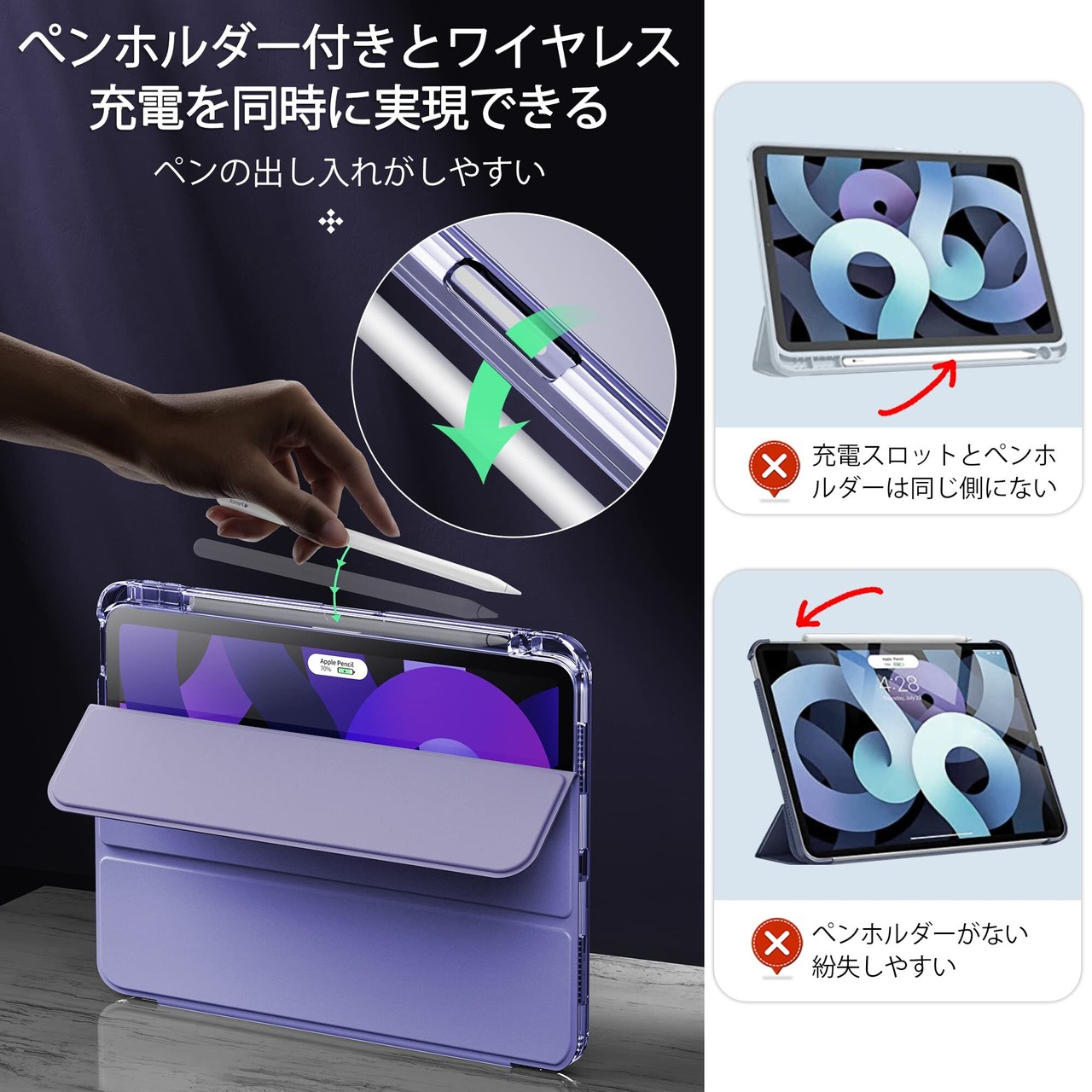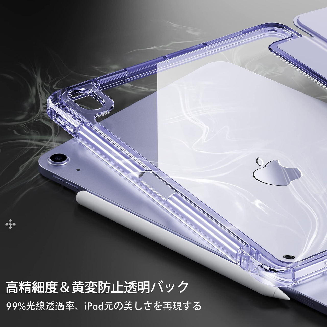 INFILAND iPad Air 11インチ ケース M2 (2024、第6世代), iPad Air 第5世代/第4世代 2022/2020 用 ケース ipad 10.9インチ カバー ペンホルダー付き 軽量 薄型 裏全透明カバー 耐衝撃 三つ折り保護カバー スマート オートスリープ機能 (Purple1)