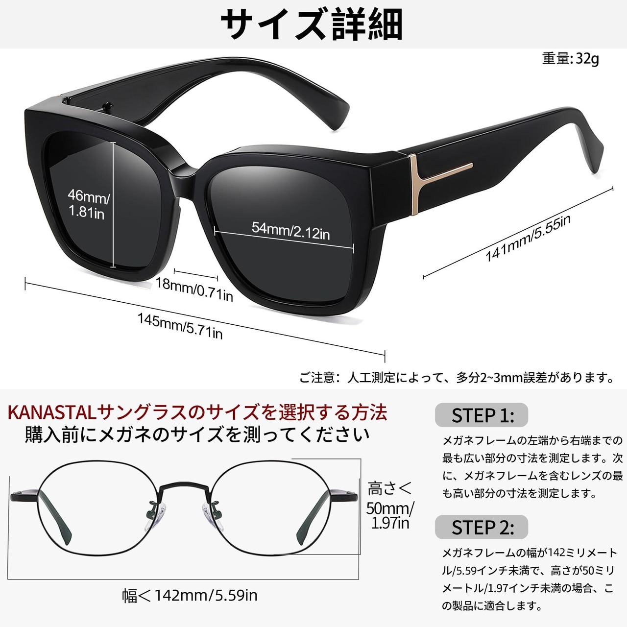 [KANASTAL] オーバーサングラス メガネの上から掛けられる レディース メンズ 偏光 UV400 紫外線カット 運転用 釣り スポーツ(明るい黒)