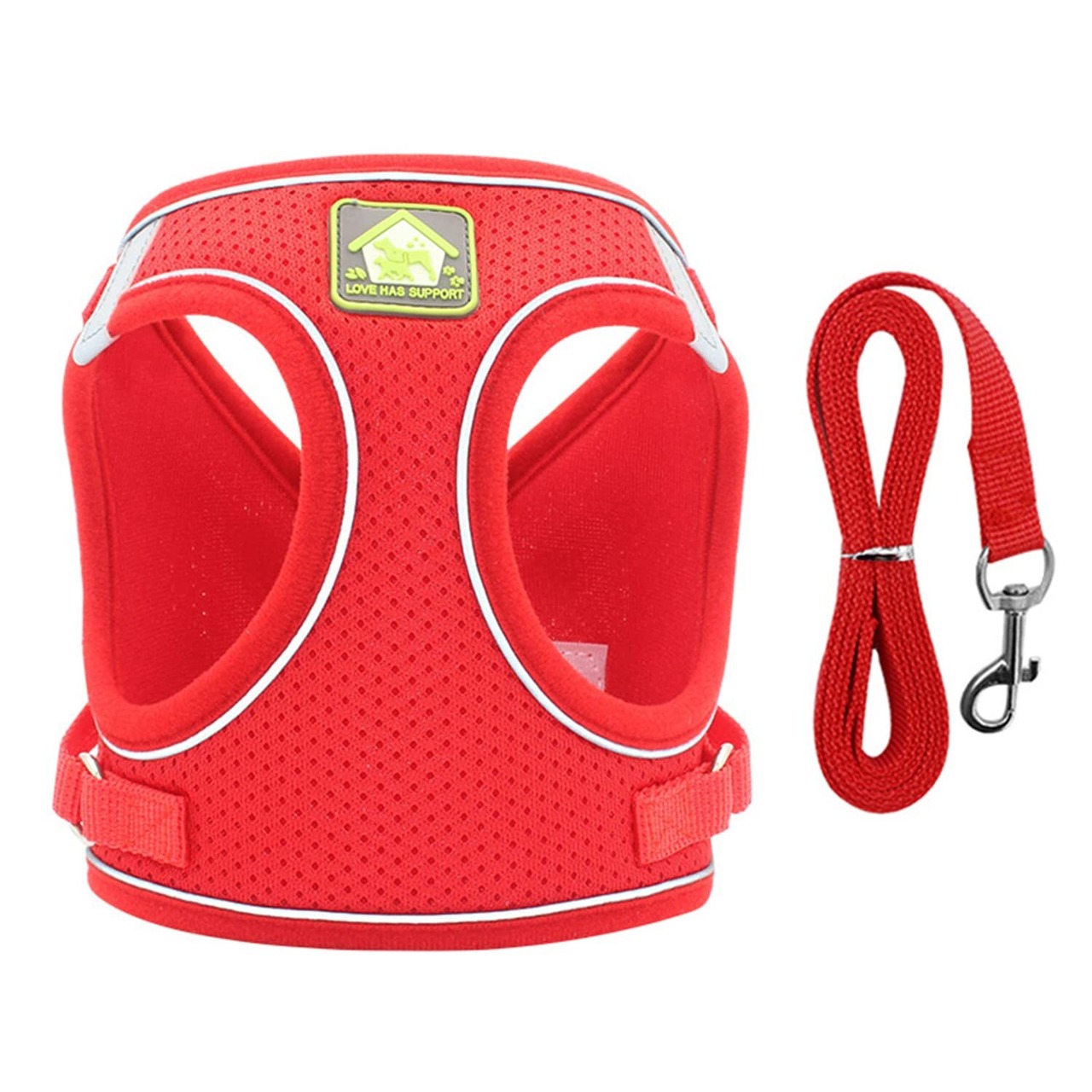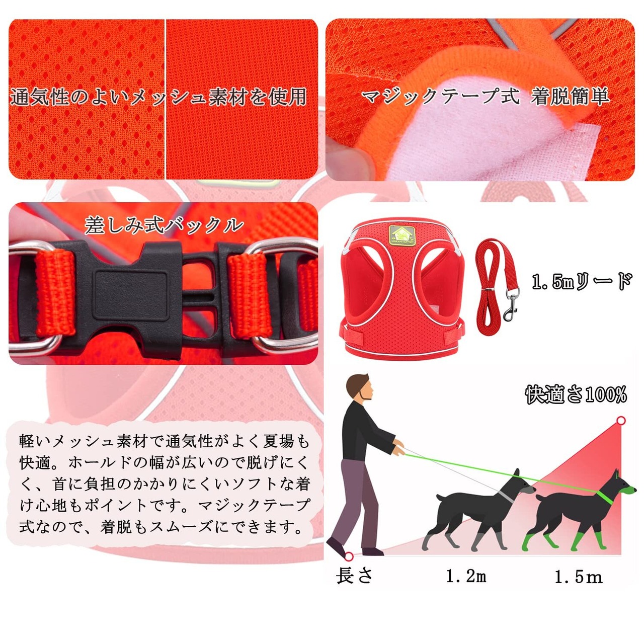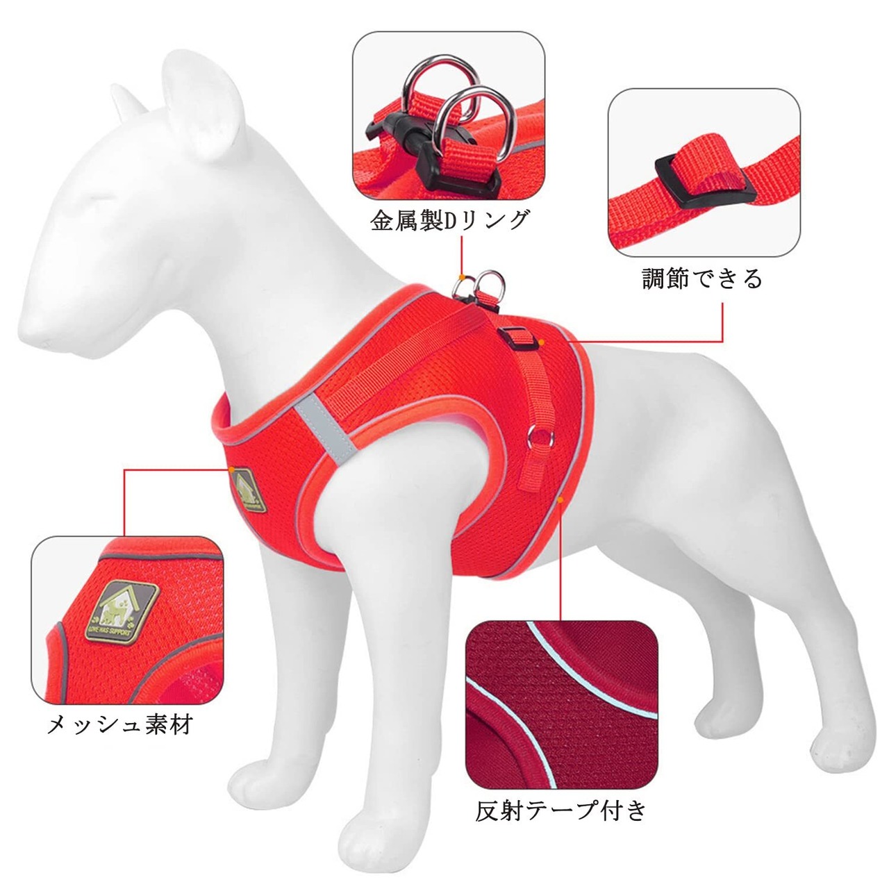 Yoseka 犬用ハーネス リード付き ハーネス 小型犬 猫 犬 ハーネス 反射テープ メッシュ 脱げない リードセット 胴輪 犬 はーねす 可愛い ドッグハーネス 調節可能 通気性 簡単着脱 散歩 しつけ用 軽量 赤 (S)
